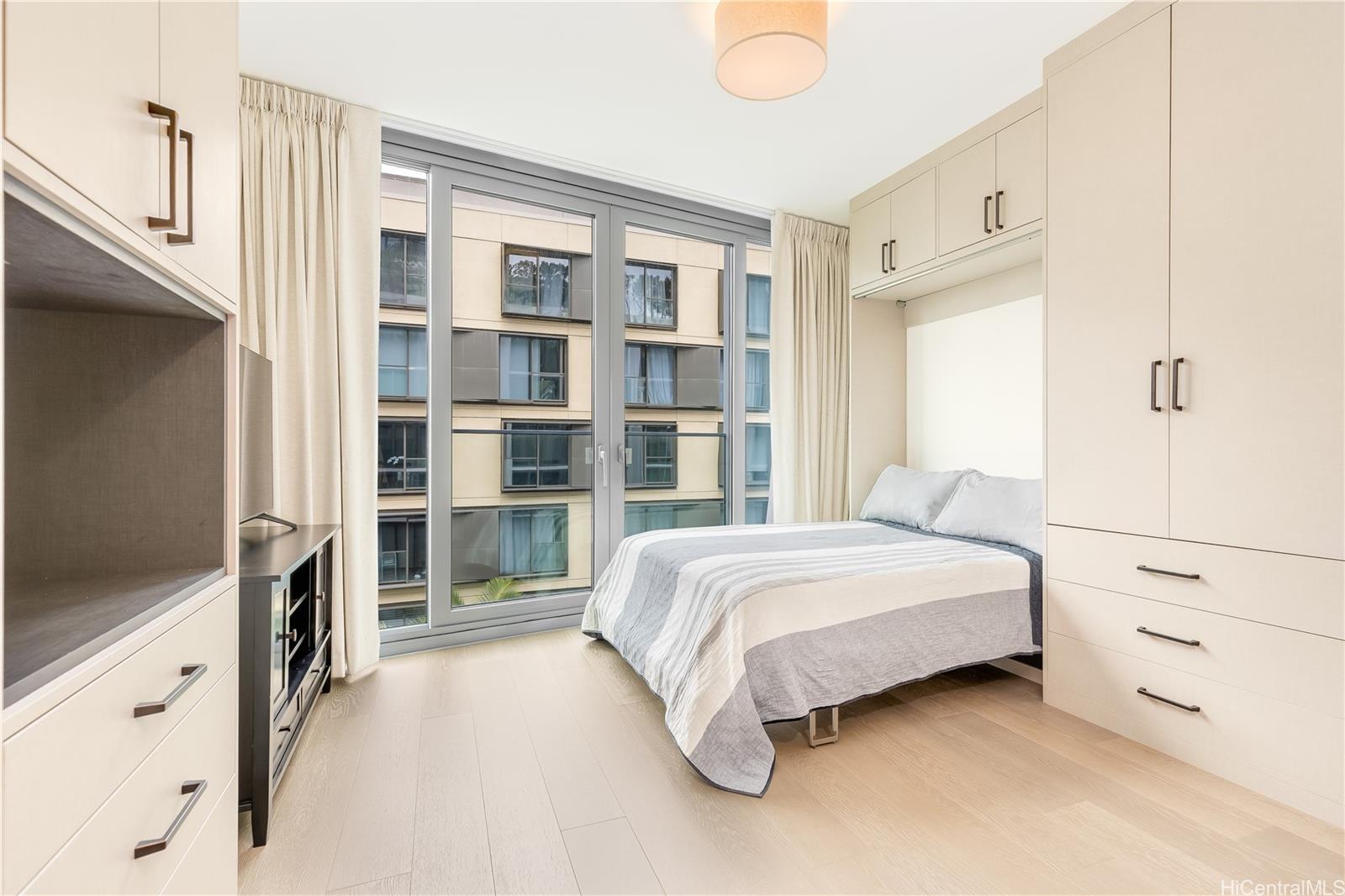 Welcome home to Koula at Ward Village, where modern living meets everyday convenience. This studio residence offers the best-priced opportunity in Koula, delivering remarkable value in the heart of Kakaako. Situated in the podium tower, it includes 1 parking stall conveniently located on the same floor as the unit for easy, direct access. Thoughtfully designed to maximize space, the unit showcases added features including a California Closets Murphy bed with built-in storage, an additional custom pantry unit, and dual-layer window drapery that provides natural light by day and enhanced privacy in the evening. Enjoy the comfort of central AC, the flexibility of a pet-friendly building (please verify), and an abundance of resort-style amenities designed to enhance your lifestyle. Ideally situated in this vibrant, highly sought-after neighborhood, this exceptional home is just steps from Victoria Ward Park, Whole Foods, Ala Moana Beach, acclaimed dining, boutique shopping, parks, and much more offering a dynamic yet comfortable experience right outside your door. Call your agent to schedule a private showing today!