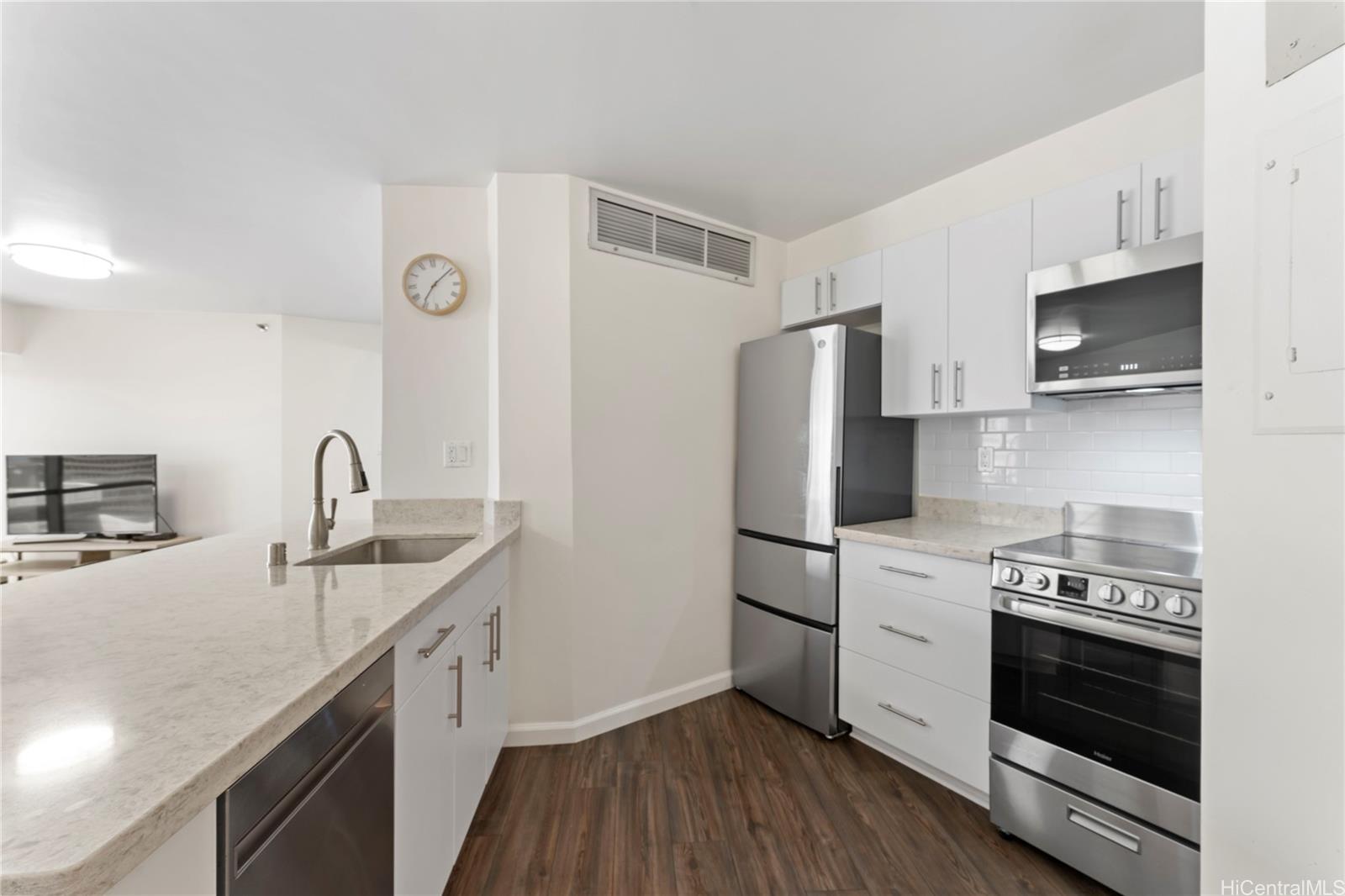 エグゼクティブセンターのこの上階にあるセンス良く改装されたレジデンスからは、海と街の壮大な眺望をお楽しみいただけます。この魅力的なユニットには、専用駐車場1台分、室内洗濯乾燥機、そしてわずか2年前に完了したエアコンシステムの全面交換が含まれています。2019年に改装されたこの物件は、BMX複合用途地域指定により、住居、ビジネス、または合法的に許可された短期賃貸など、非常に柔軟な利用が可能です。ホノルルの中心業務地区の中心部に位置するエグゼクティブセンターは、バス路線に直結しており、高速道路へのアクセスも容易です。収益の可能性に関心のあるオーナー様向けに、アクア・アストンは建物内に便利なフロントデスクを備えたホテルプログラムを運営しています。居住者は24時間セキュリティと敷地内のレストランも利用できます。タマリンドパーク、チャイナタウン、ハワイシアター、アロハタワー、裁判所、ハワイ州議会議事堂、イオラニ宮殿、連邦ビル、そして数多くのレストラン、ショッピング、銀行、日常生活に必要な施設に近接する理想的な立地にあるこの物件は、ホノルルの都市生活の最高の形と言えるでしょう。