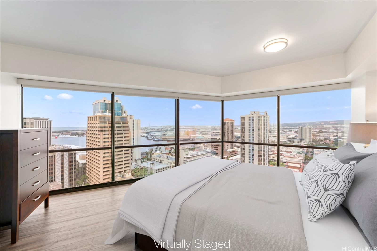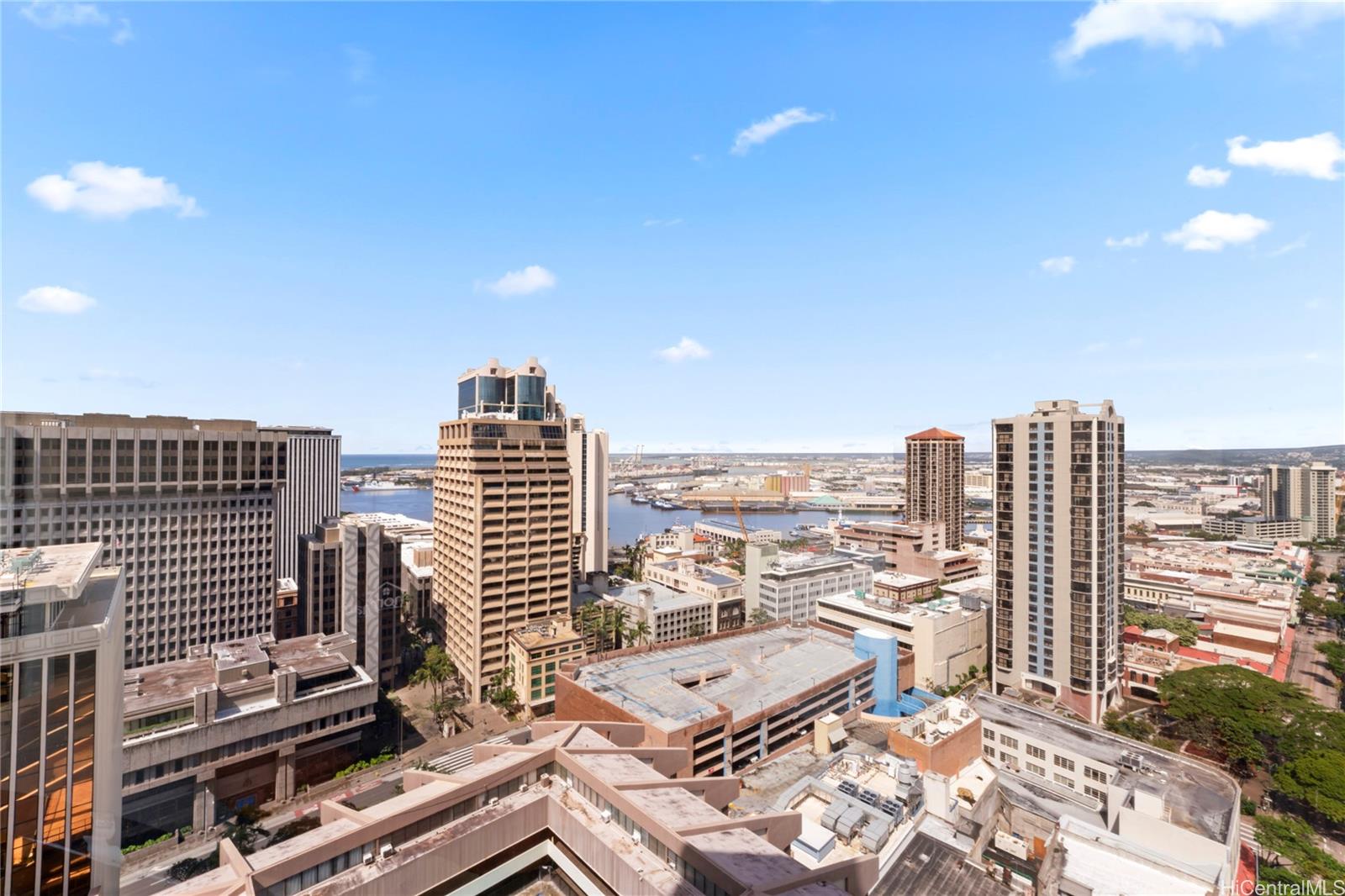 Enjoy sweeping high-floor ocean and city views from this tastefully renovated residence at Executive Centre. This desirable unit includes one reserved parking stall, an in-unit washer and dryer, and a full AC system replacement completed just 2 years ago. Renovated in 2019, the property offers exceptional flexibility with BMX mixed-use zoning, allowing for residential, business, or legally permitted short-term rental use. Located in the heart of Honolulu’s Central Business District, Executive Centre sits directly on the bus line with easy freeway access. For owners interested in income potential, Aqua-Aston operates a hotel program with a front desk conveniently located in the building. Residents also enjoy 24-hour security and an on-site restaurant. Ideally situated near Tamarind Park, Chinatown, Hawaii Theatre, Aloha Tower, the courthouses, Hawaii State Capitol, Iolani Palace, the Federal Building, and a wide array of restaurants, shopping, banks, and everyday conveniences, this is urban Honolulu living at its best.