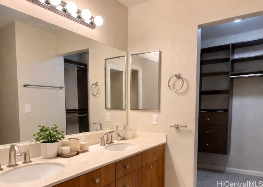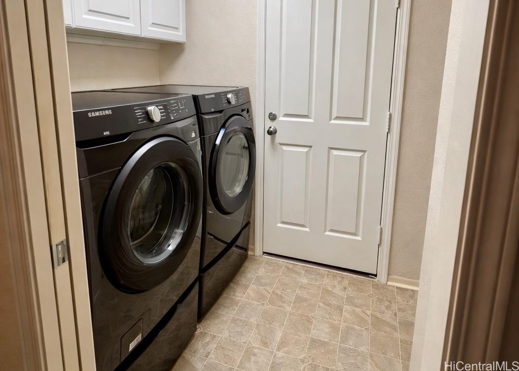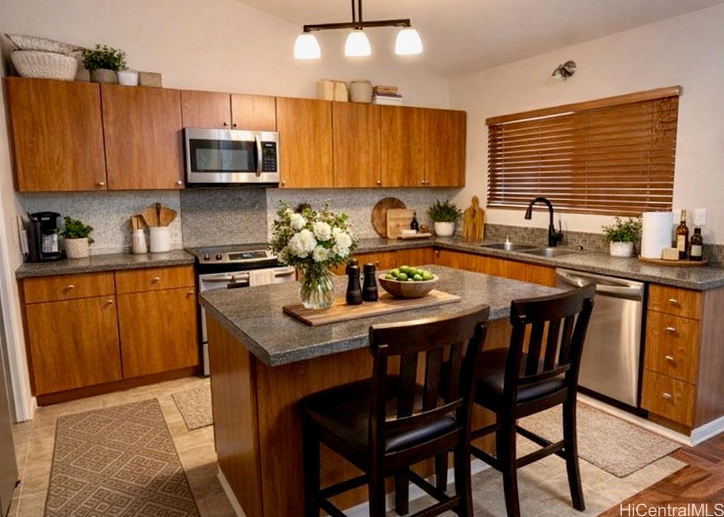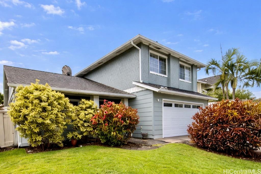 Beautiful single-family home in Ewa by Gentry Prescott featuring a spacious open floor plan and soaring vaulted ceilings that create a bright and inviting atmosphere. This well-maintained residence offers comfort and modern island living with an owned photovoltaic system and Tesla battery for energy efficiency and savings. The flexible layout includes a full bedroom and bathroom on the first floor, ideal for guests, extended family, or a home office. The kitchen offers ample cabinetry, generous counter space, a large pantry, and an island with countertop seating, opening seamlessly to the main living areas for easy entertaining. Relax under the covered lanai, perfect for gatherings or enjoying the private yard. Additional features include central AC and a lawn sprinkler system. Conveniently located near parks, golf courses, beaches, and Kapolei shopping, dining, and entertainment. First available showing is 4/1/26.