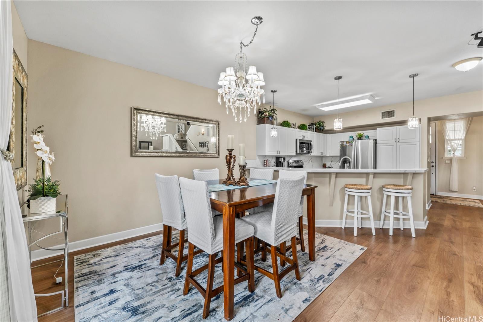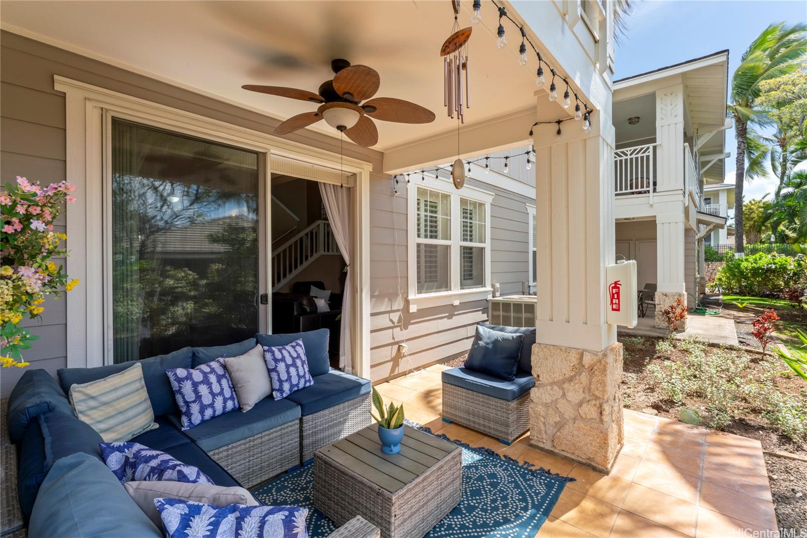 Welcome to your fully furnished slice of paradise in the highly sought-after Ko Olina community! This stunning turnkey home features 3 bedrooms and 3 full bathrooms, including a convenient first-floor bedroom and bath. The dramatic two-story great room stays bright with indirect sunlight all day, highlighting premium upgrades like waterproof laminate flooring, sleek quartz countertops, and fresh paint. Retreat to the upstairs primary suite, complete with a private balcony overlooking the pool and a spa-inspired bath with an oversized cultured marble shower and soaking tub. This move-in-ready residence comes with exceptional bonuses, including a 6-seater golf cart, a luxury massage chair, a treadmill on the tiled lanai, and a FREE 1-year home warranty for total peace of mind. Perfectly situated right next to the community pool and BBQ areas, you’ll enjoy a vibrant neighborhood famous for its festive holiday spirit and golf cart parades. Live a worry-free resort lifestyle where the HOA handles all groundskeeping, all while being just minutes away from world-class beaches, golf, Costco, and Target. Your tropical retreat awaits!
