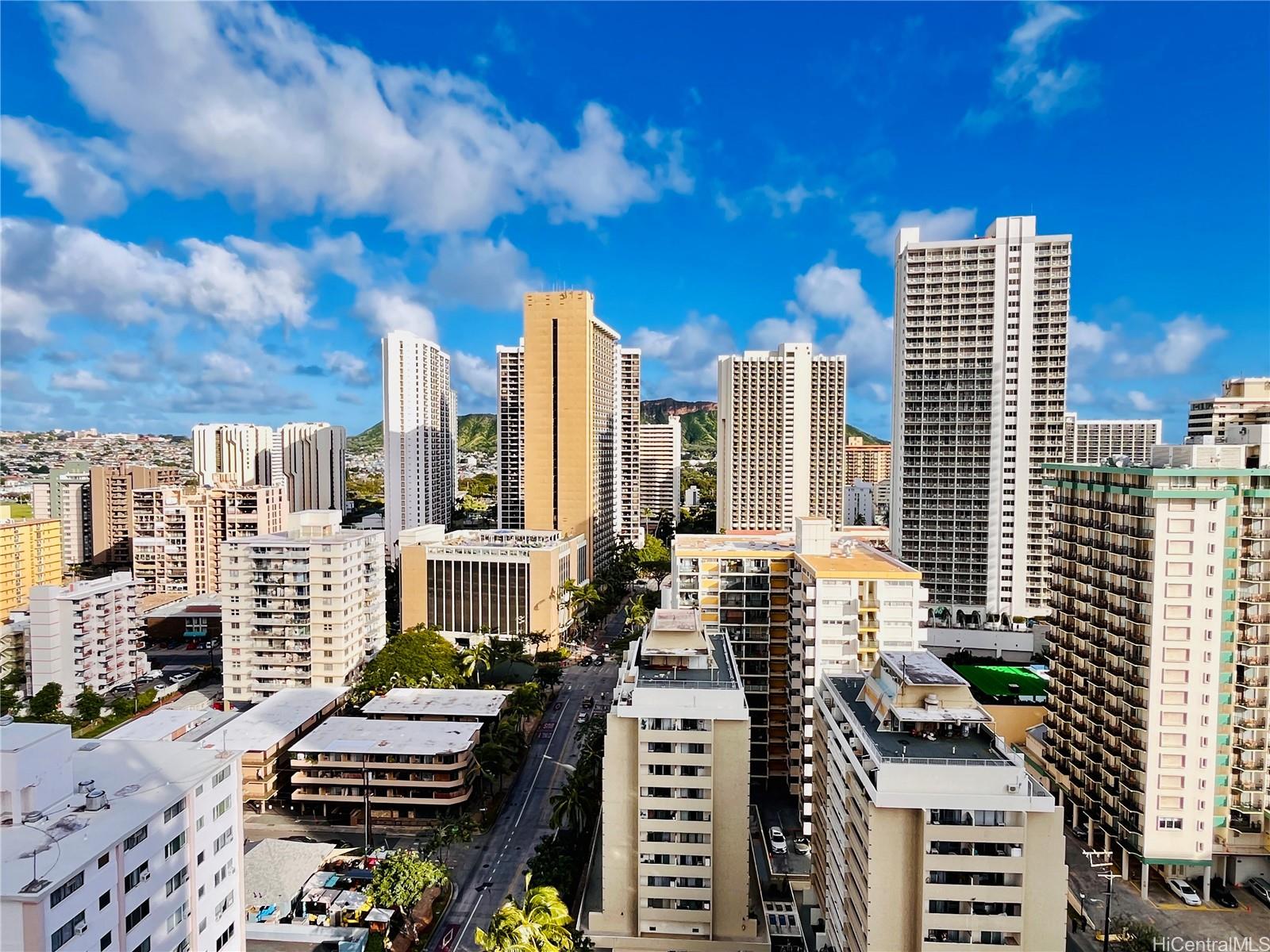 Rarely available high-floor corner unit on the Diamond Head side at Pacific Monarch, located in the heart of Waikiki.