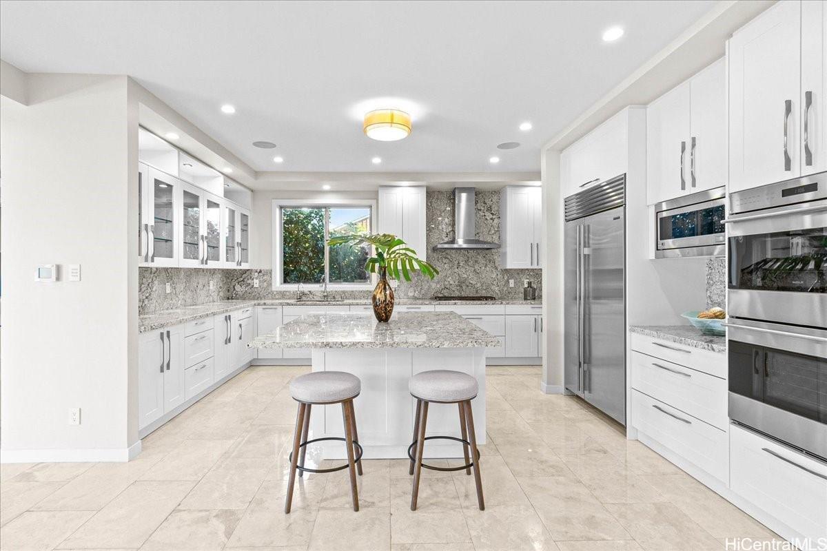 カイマナヒラ通りにあるこのゴージャスなDHレジデンスで、贅沢なアイランドライフスタイルをお楽しみください!2014年に建てられたこの広々とした家は、4ベッドルーム、5.5バスルーム、スプリットエアコン、スマートホームシステム、2台分のガレージを備えた考え抜かれた間取りが特徴です。メインフロアには、天井高の高いリビングルーム、ファミリー/エンターテイメントルーム、書斎/ライブラリー、キッチン、専用バスルーム付きの大きなベッドルームがあります。複数のリビングとダイニングエリアからは、大きな屋根付きラナイ、スイミングプール、ホットタブ、屋外カバナに出ることができます。高い天井と大きな窓から自然光がたっぷりと差し込み、室内と屋外がシームレスにつながっています。グルメキッチンには、Sub Zero、Wolf、Studio Beckerのキャビネットなど、最高級の家電製品が備えられています。 2階には、大きなラナイに面したリビング/ファミリールームがあり、そこからはダウンヒルビューが楽しめます。また、ゆったりとしたウォークインクローゼットと大きな収納室、ラナイ、オーシャンビューを備えた主寝室、さらに専用バスルーム付きのベッドルームが2部屋あります。家族や友人との集まり、そして柔軟なライフスタイルに対応できる十分な広さです。世界的に有名なビーチ、サーフスポット、クロムウェルズビーチ、シャングリラエステート、トライアングルパーク、カピオラニ公園、ワイキキ、レストラン、ショッピング、アウトドアアクティビティまで数分という好立地。ハワイで最も美しいエリアの一つに建つ、現代的な住宅を所有できるまたとないチャンスです。