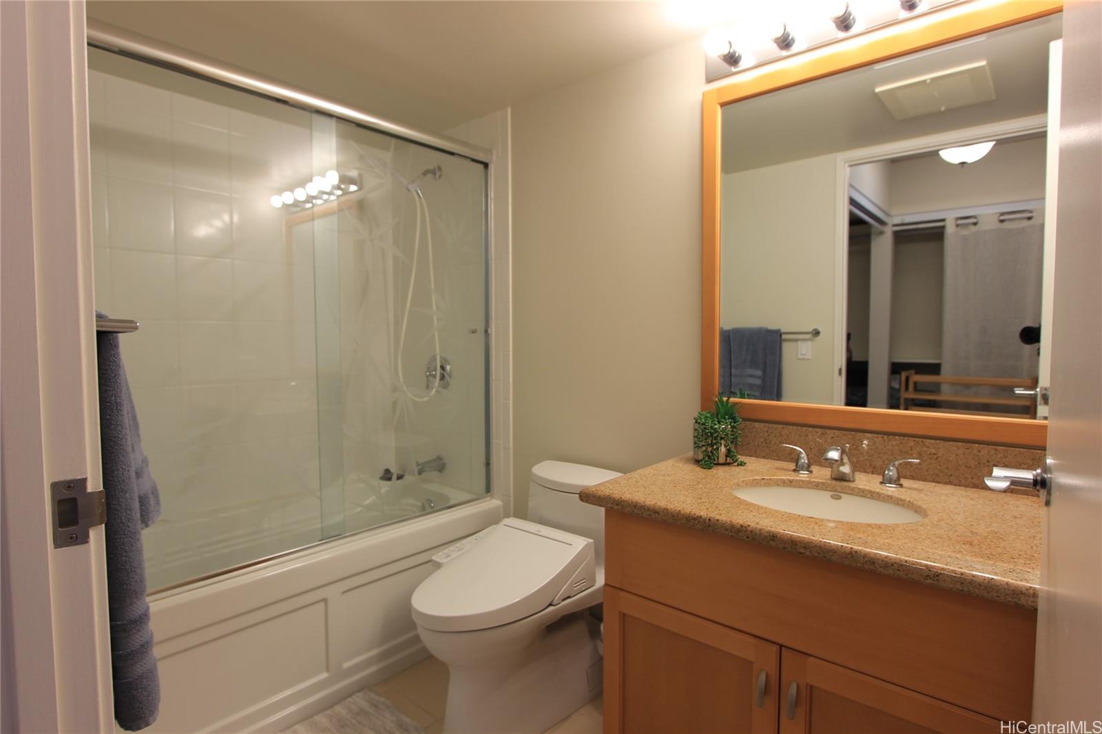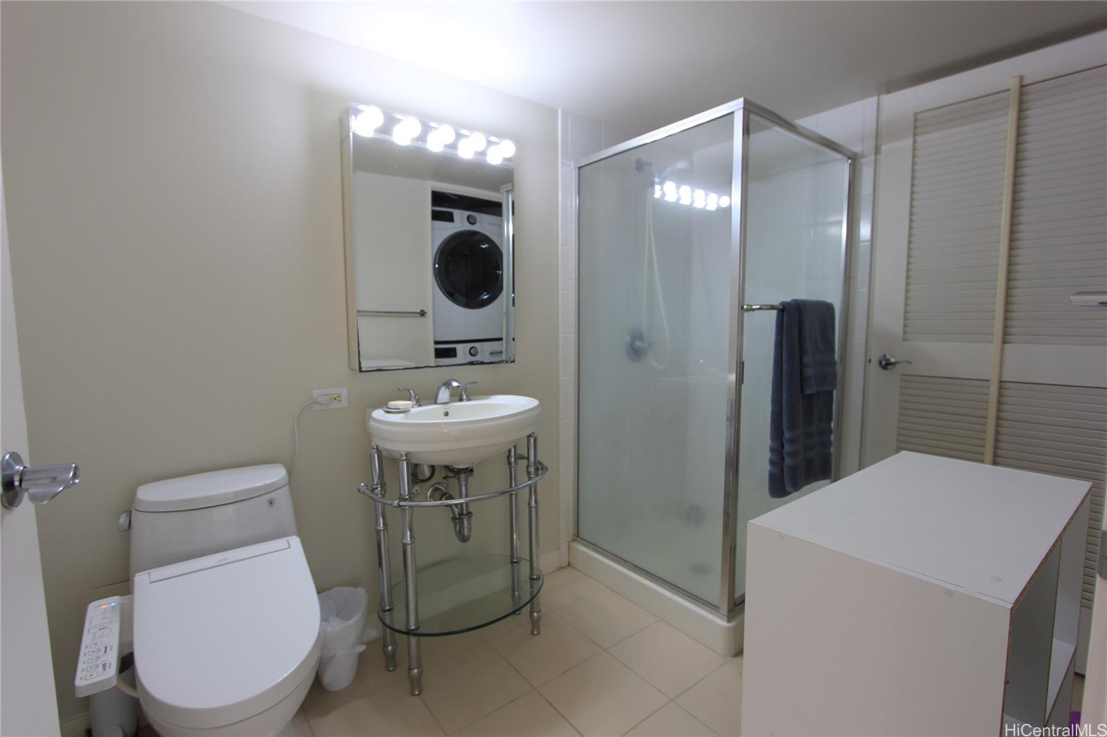 Nicely remodeled 2-bedroom 2 bath unit with 2 parking stalls on Cool and Quiet side of building! Floor to Ceiling windows provide open views of City and Mountain! Special features include granite counter tops, laminate flooring, tiled floor in kitchen and bathroom, 2 bidet toilets, Full Size Washer/Dryer in unit and more! Great amenities include, pickleball court, playground, EV charging station party room, theater, BBQ area, tennis count, putting green and guest parking! Convenient Location! Short distance to Ala Moana shopping Center, Beach, Restaurants, Businesses, Public Transportation and Entertainment options! Building is Pet Friendly!!