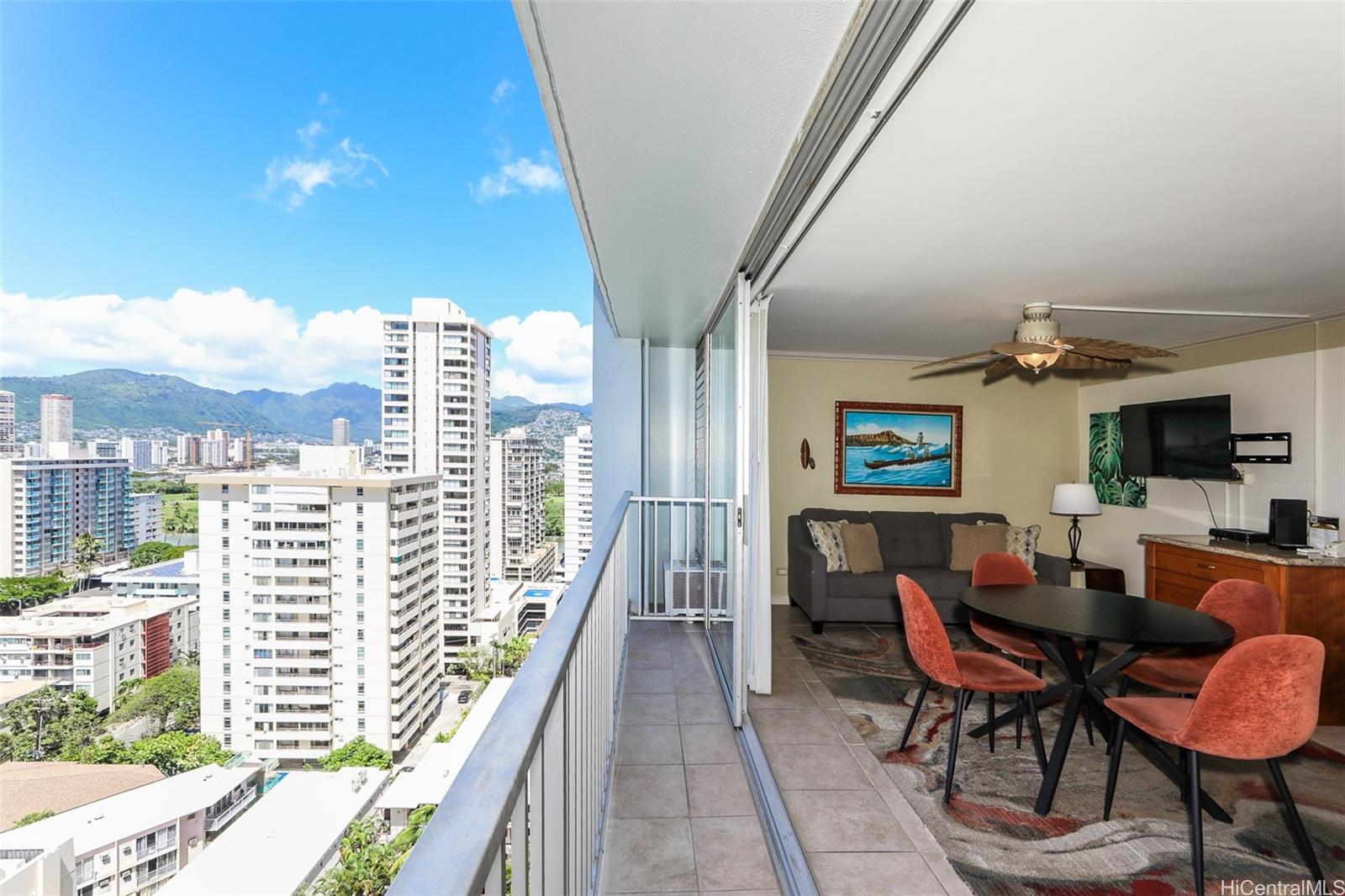 Legal vacation rental in the Waikiki resort zone. High floor unit 1904 at the Pacific Monarch is fully furnished and income producing. Currently in the hotel rental pool, this turnkey studio offers investors and cash buyers an opportunity to earn revenue from day one and enjoy personal use. This well-maintained studio accommodates up to four guests and has been owner-managed off the market for over ten years, with one full & one partial renovation completed. The unit features breathtaking ocean, mountain, and city views from a high floor, enhancing both rental appeal and personal enjoyment. Two-minute walk to Waikiki Beach and close to Target, Intl. Market Place, ABC Stores, restaurants, shops, and bus lines. This location is ideal for short and long stays. The building has completed major renovations, including upgraded common areas & ground-floor retail. The rooftop sky terrace and pool deck provide panoramic ocean views and sunsets. Unit 1904 is a well-maintained, move-in opportunity in one of Waikiki's most desirable locations.