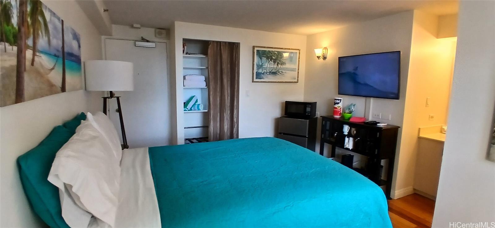 新価格 - オーシャンビュー、内装塗装済み、竹製フローリング再研磨済み、ベッドと椅子新品、エアコン、ラナイバーカウンター3点セットも完備。有名なワイキキビーチとデューク像までわずか2ブロック。短期レンタルに最適!ショッピング、ダイニング、公園、動物園など、ワイキキのあらゆるものがすぐ近くにあります。バス路線にも近く、地下には時間貸しまたは最大24時間駐車可能な公共駐車場(前払い)があります。クヒオビレッジは2021年に外壁塗装と剥落補修工事を完了し、2023年から2025年にかけてロビーの改修工事を実施しました。改修工事にはFOBシステム、64チャンネルのセキュリティカメラシステム、サインインキオスク、キー保管庫システムが含まれています。クヒオビレッジには毎日午後4時から午前6時まで常駐警備員がおり、敷地内にはAOAOオフィス、サーフボードラック、自転車ラックのレンタルもあります。新しいランドリールームも近日オープン予定です。 2026年の維持管理費は645.68ドルで、電気、水道/下水道、温水、ケーブルテレビ、インターネット、セキュリティ、オンサイト管理が含まれます。2027年12月まで毎月75.33ドルの特別賦課金がかかります。クヒオビレッジはリゾート複合用途地域に指定されており、NUCなしで合法的に日貸し(または30日未満の貸し)が可能です。合法的な短期賃貸物件、または自宅として使えるスタジオを手に入れる絶好の機会です。
