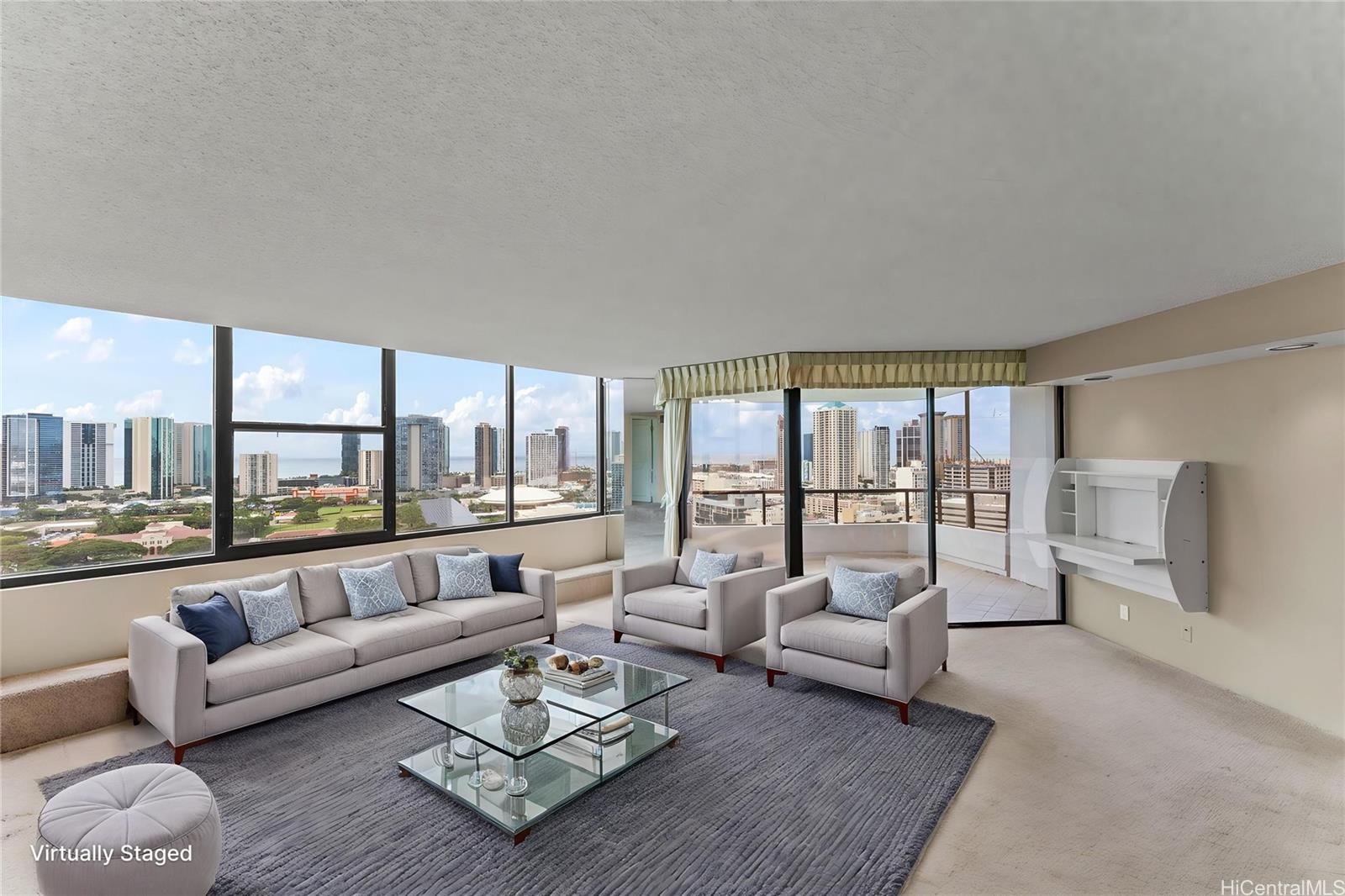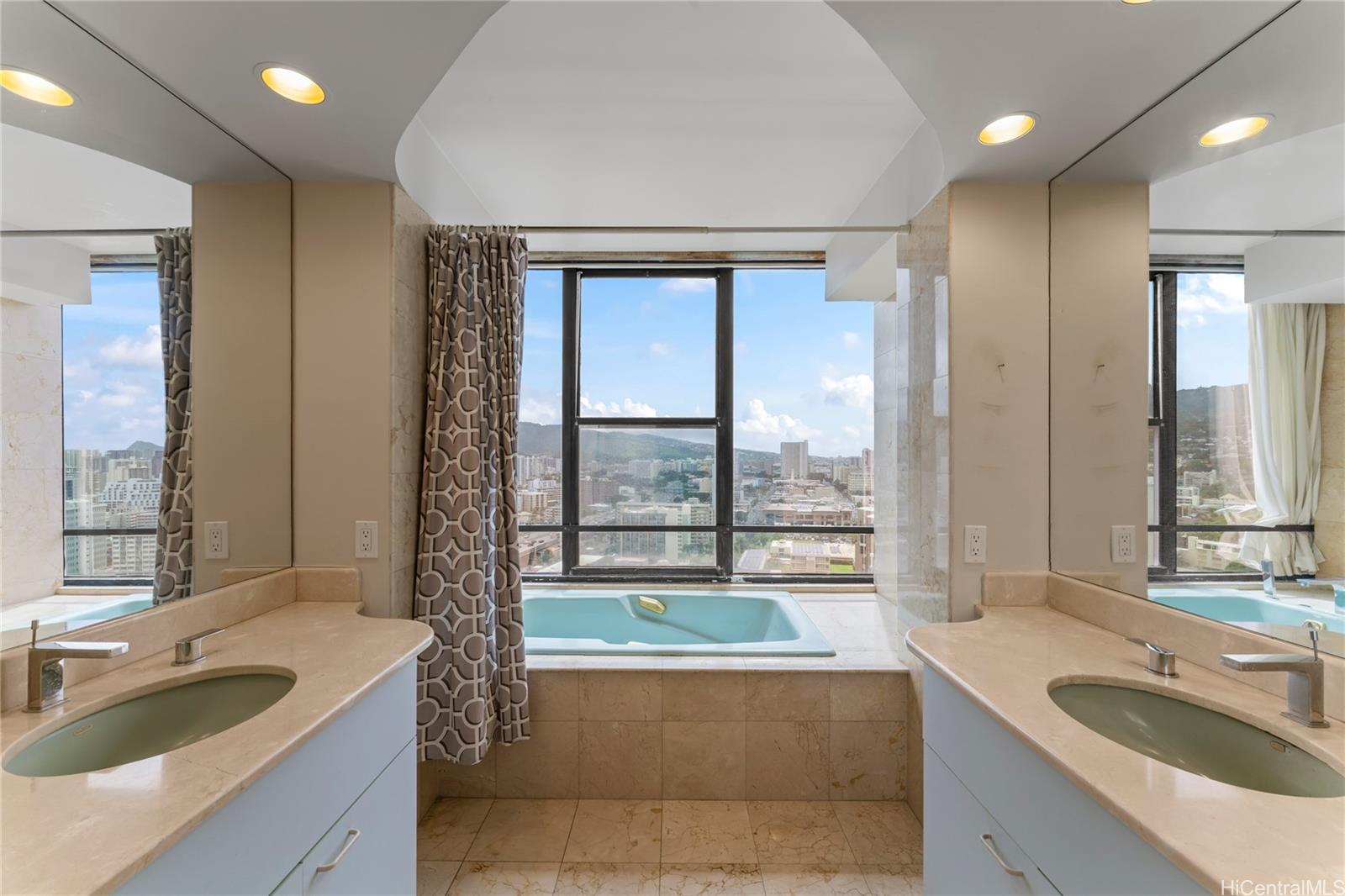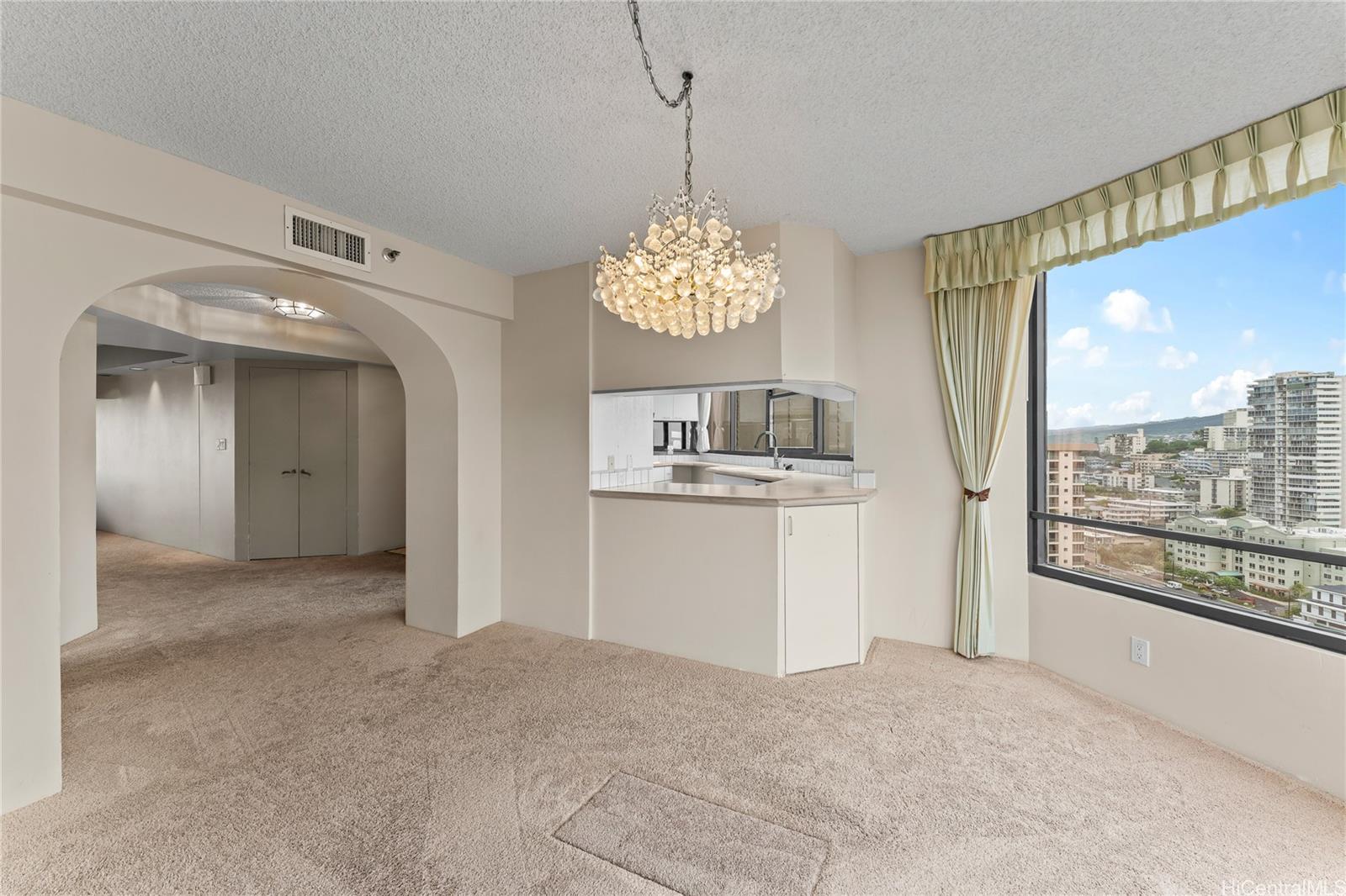 太平洋、ダイヤモンドヘッド、街の明かり、日の出と日没の素晴らしい景色をお楽しみください。市内屈指の施設にも近く、便利な立地です。建物には、車寄せ付きのセキュリティ付きエントランスとエレガントなロビーがあり、洗練された生活の雰囲気を醸し出しています。ダイヤモンドヘッド側の角部屋は非常に広々としており、大きな屋根付きラナイ、大理石のエントランス、大きな主寝室用バスルーム、広いダイニングエリア、独立した収納ユニットを備えています。便利な屋根付き駐車場が2台分あり、管理費にはセキュリティ、基本ケーブル、温水、セントラルエアコン、電気、水道、下水道が含まれています。物件は現状のまま引き渡されます。