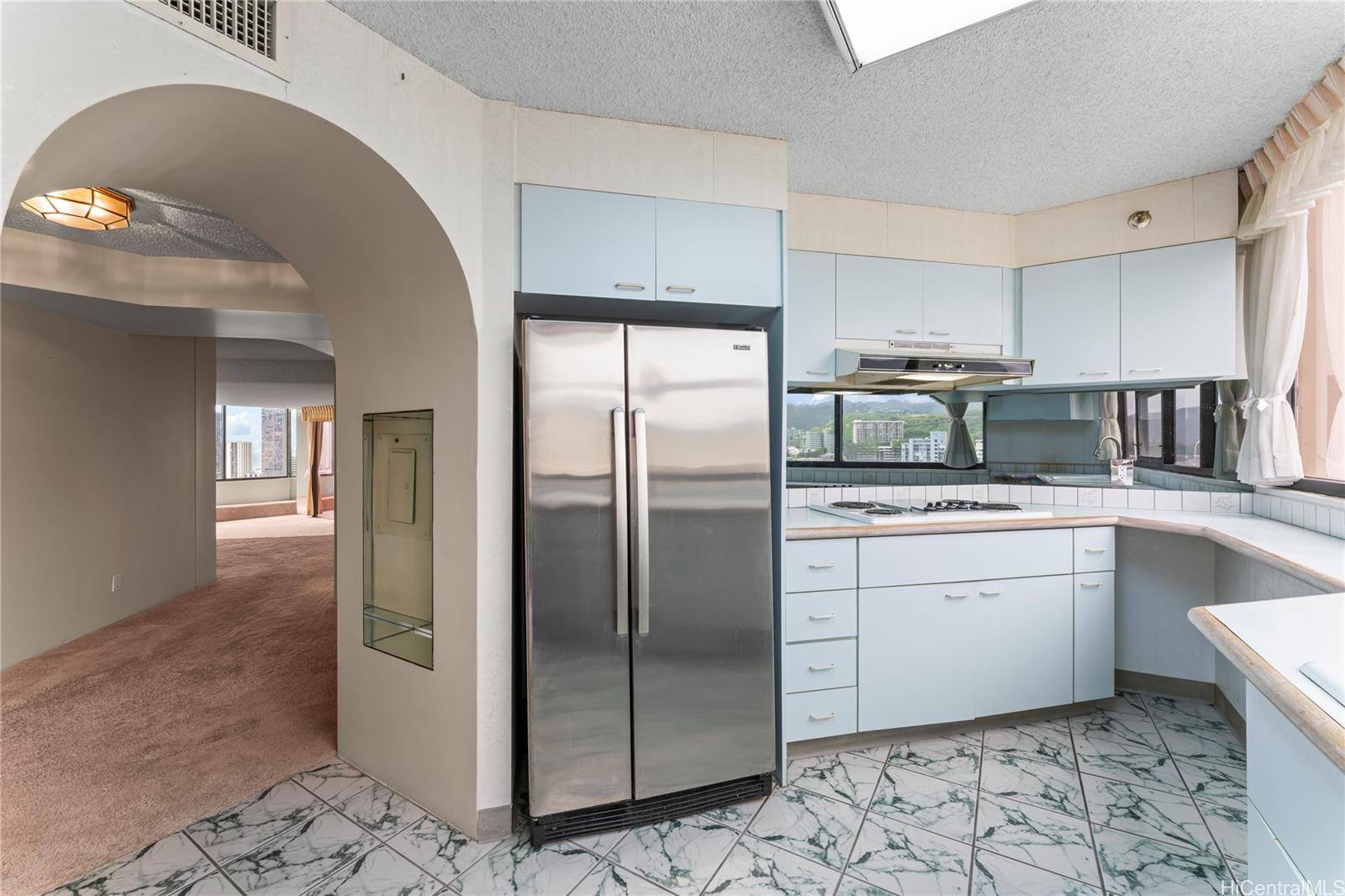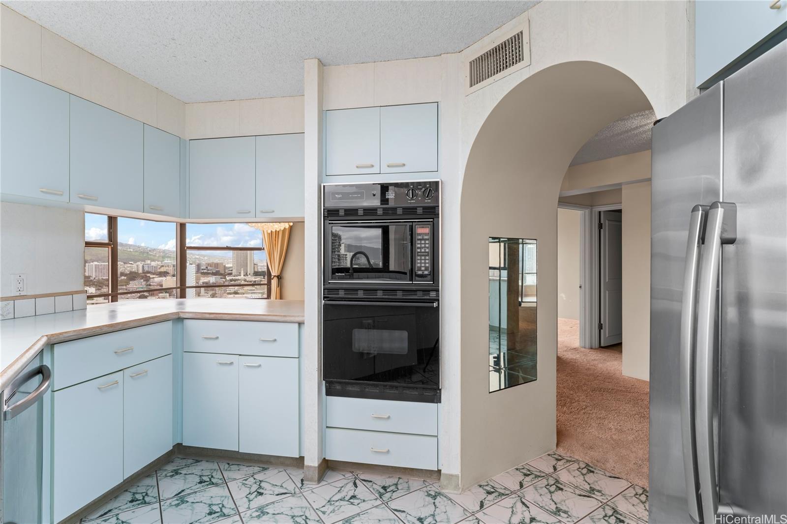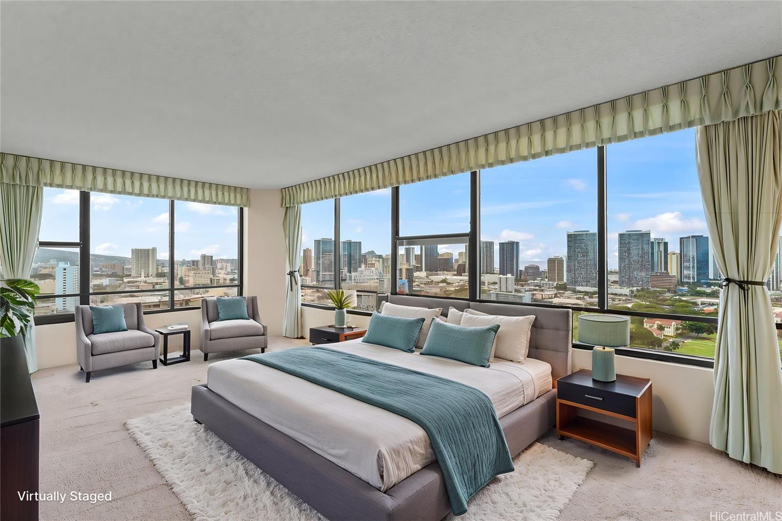 太平洋、ダイヤモンドヘッド、街の明かり、日の出と日没の素晴らしい景色をお楽しみください。市内屈指の施設にも近く、便利な立地です。建物には、車寄せ付きのセキュリティ付きエントランスとエレガントなロビーがあり、洗練された生活の雰囲気を醸し出しています。ダイヤモンドヘッド側の角部屋は非常に広々としており、大きな屋根付きラナイ、大理石のエントランス、大きな主寝室用バスルーム、広いダイニングエリア、独立した収納ユニットを備えています。便利な屋根付き駐車場が2台分あり、管理費にはセキュリティ、基本ケーブル、温水、セントラルエアコン、電気、水道、下水道が含まれています。物件は現状のまま引き渡されます。