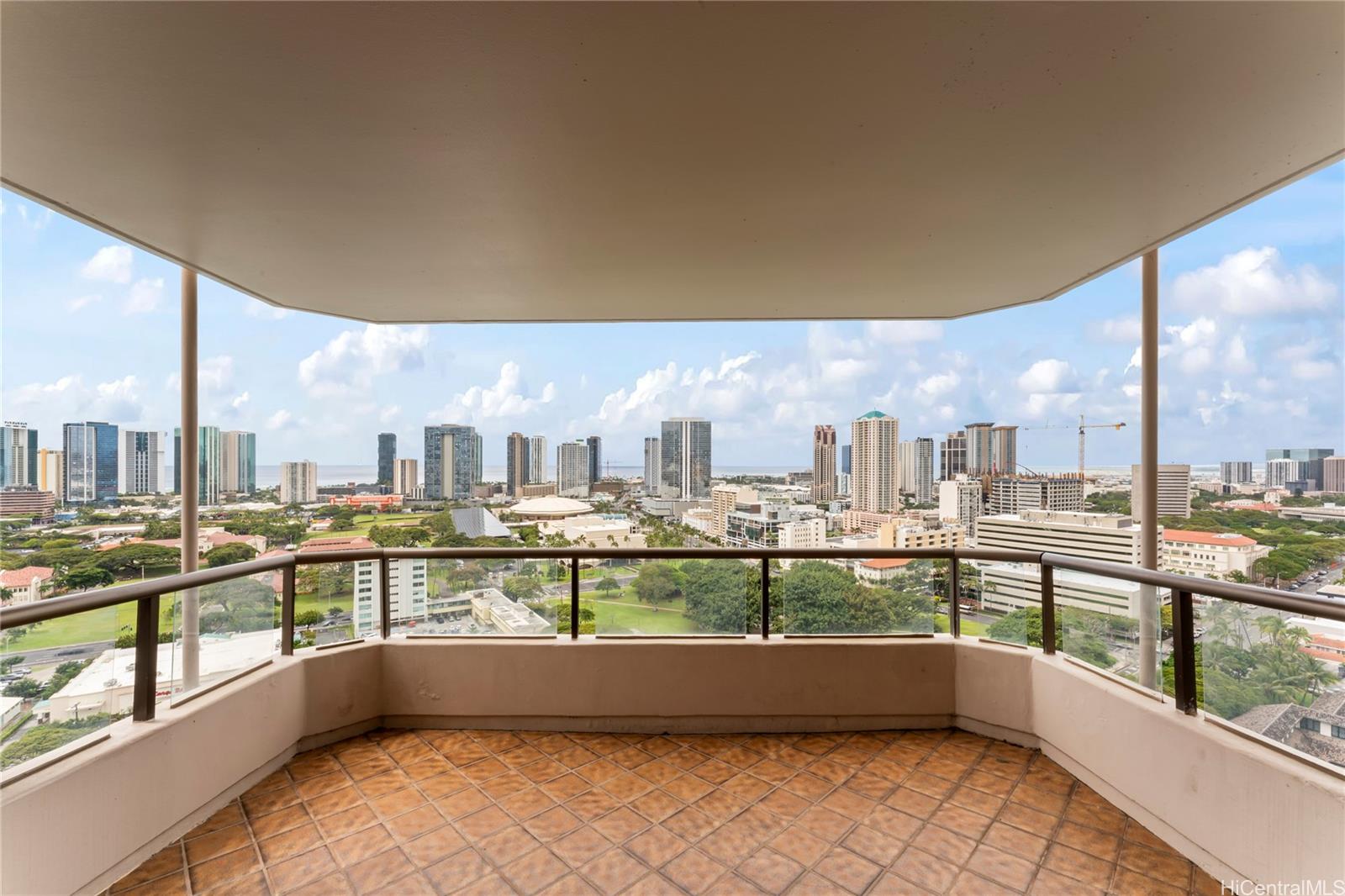 Enjoy the amazing views of the Pacific Ocean, Diamond Head and City lights, Sunrise and sunset views. Conveniently located near some of the city's finest venues, Building features A secured entry with Porte-cochere and elegant lobby it sets the tone for refined living. This Diamond Head side corner unit is very spacious includes a Large covered lanai, marble entry large and primary bath, large Dining area, and separate Storage unit. Two convenient covered parking, Maint. fee includes Security, Basic cable, Hot water, central air condition, Electric water and sewer. Property to be conveyed in its present condition.