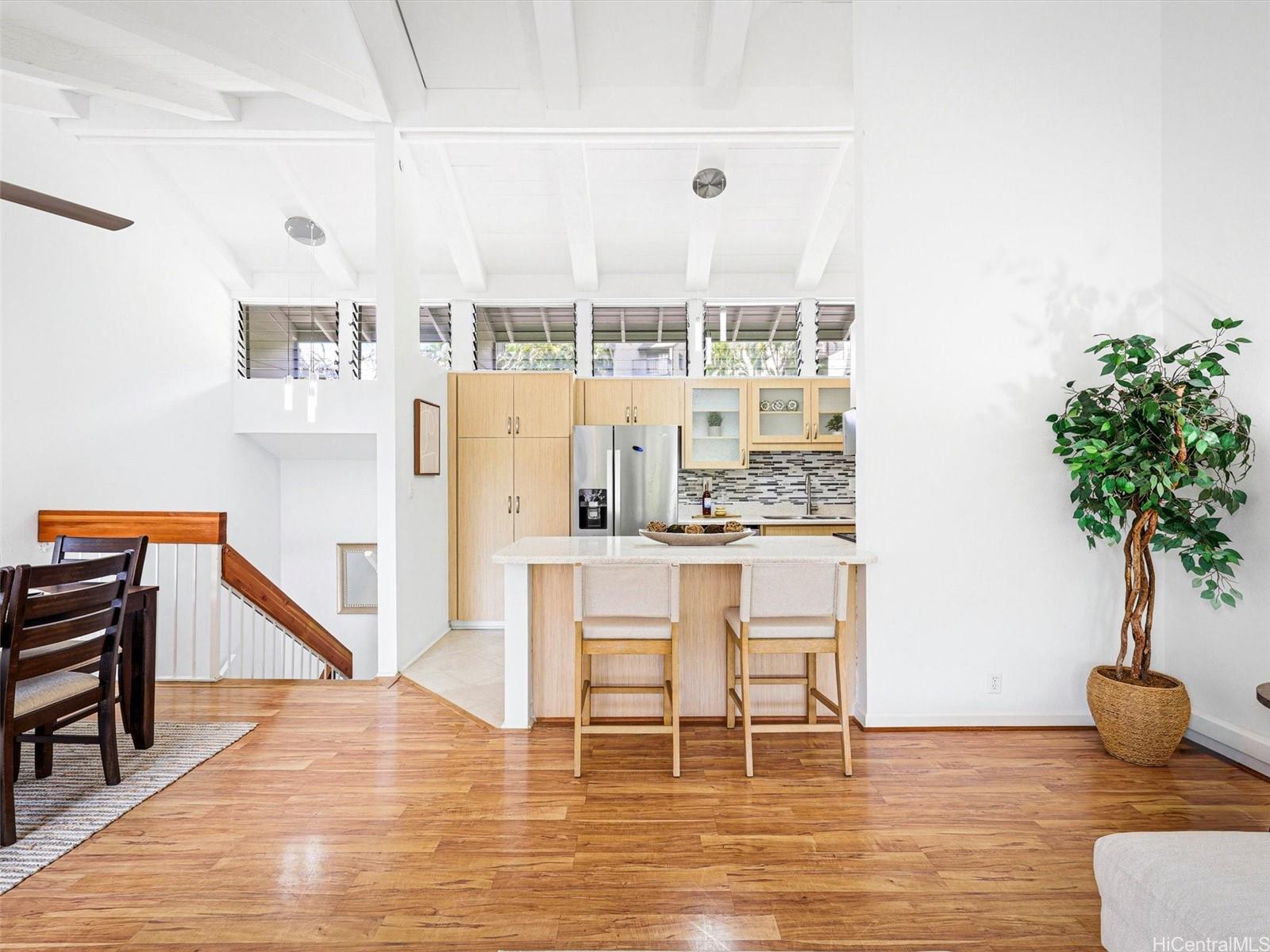 ハワイでも数少ない、マリーナの敷地と係留場所を所有する(リースではない)コミュニティ、マカニ・カイ・マリーナで、カネオヘ湾のウォータースポーツライフを満喫しませんか。この改装済みの3ベッドルーム、2バスルームのタウンハウスは、開放感あふれる広々とした空間を演出する高い天井と、清潔で明るいインテリアが特徴です。27枚の自家所有の太陽光発電パネルと2台のパナソニック製バッテリーを備え、複数のエアコン使用時のエネルギー効率を高めています。専用の34フィートのボートスリップは、セーリング、釣り、そして自宅から気軽にサンセットクルーズを楽しむのに最適です。マカニ・カイ・マリーナは単なるコミュニティではなく、ライフスタイルそのものです。カヌーやカヤックの保管場所、共有ディンギーを備えたプライベートヨットクラブ、そして湾内での隔月開催のカジュアルなセーリングレースなど、様々なアクティビティが楽しめます。美しいカネオヘ湾で、遊びながら暮らせる、またとないチャンスです!