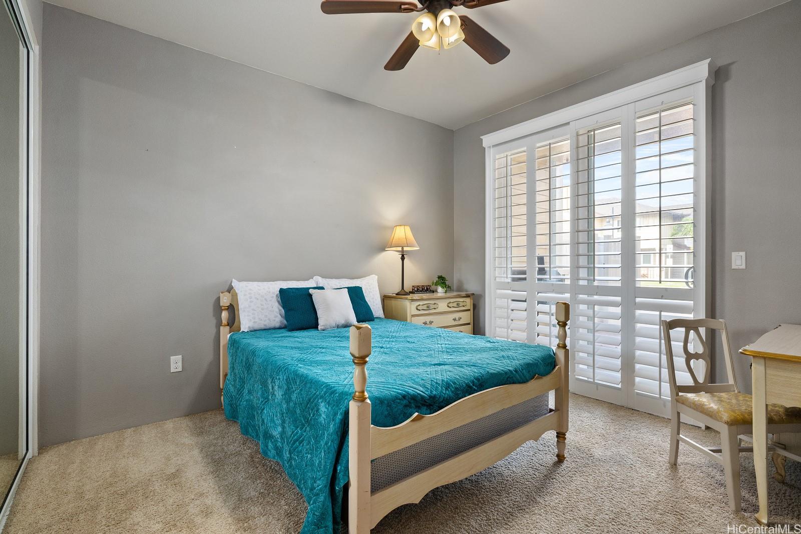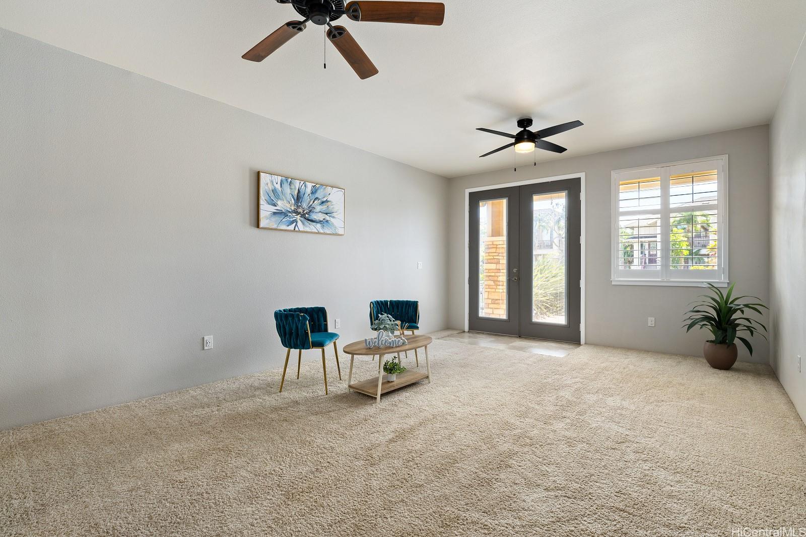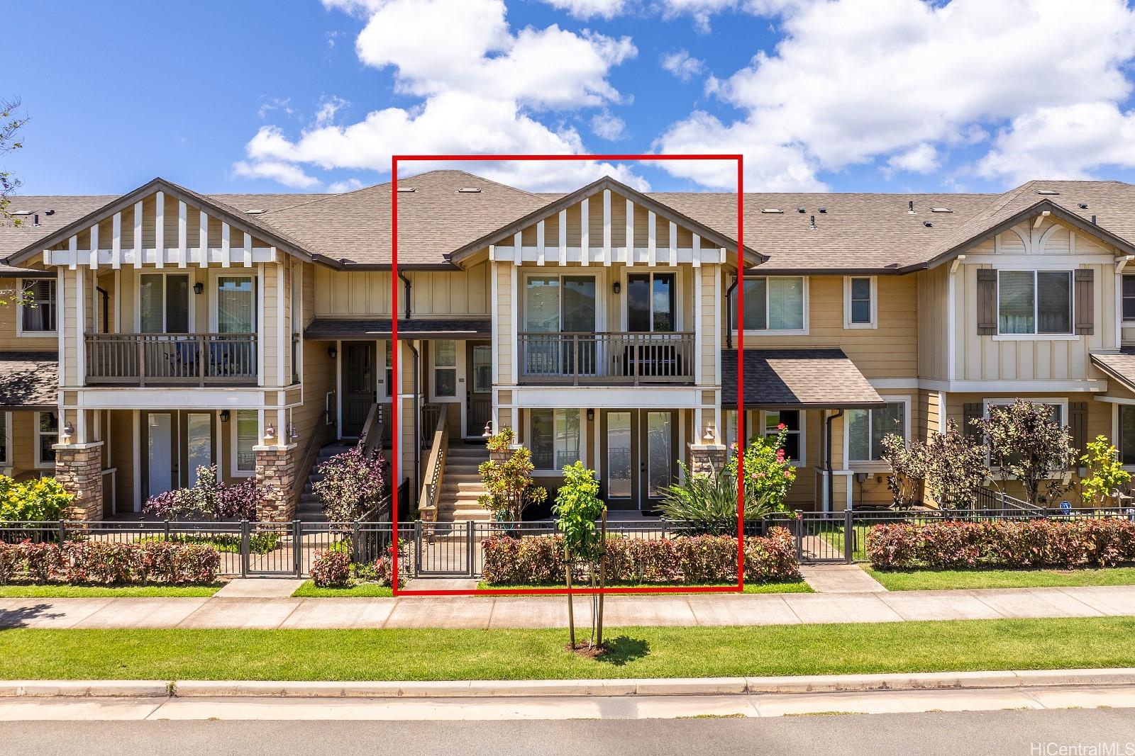 This turn-key flex property in a live-work-play community offers a rare mixed-use opportunity, ideal for both residential living and business use. Designed for versatility, this home features a separate ground-level entry into your "flex" space, perfect for a home-based business, retail space, office, or guest suite with a separate bedroom, full bath, lanai/yard space, and its own dedicated parking. The main living is on the second floor, with 2 bedrooms, 2 full bathrooms, washer/dryer and it's own covered lanai. The kitchen is thoughtfully upgraded with quartz Silestone countertops, stainless steel appliances, backsplash, and a stylish tiled accent peninsula wall. Plantation shutters throughout and custom lighting adds a refined touch, while split AC units provide comfort year-round. The flex area on the first level can be blocked off for privacy, but there's also stairs connecting it to the second level for those seeking extra space to live and entertain. Additional highlights include a 1 car garage for additional security and storage, and a total of 3 additional deeded parking stalls. This is a potential short sale, and if so, will be subject to lender approval.