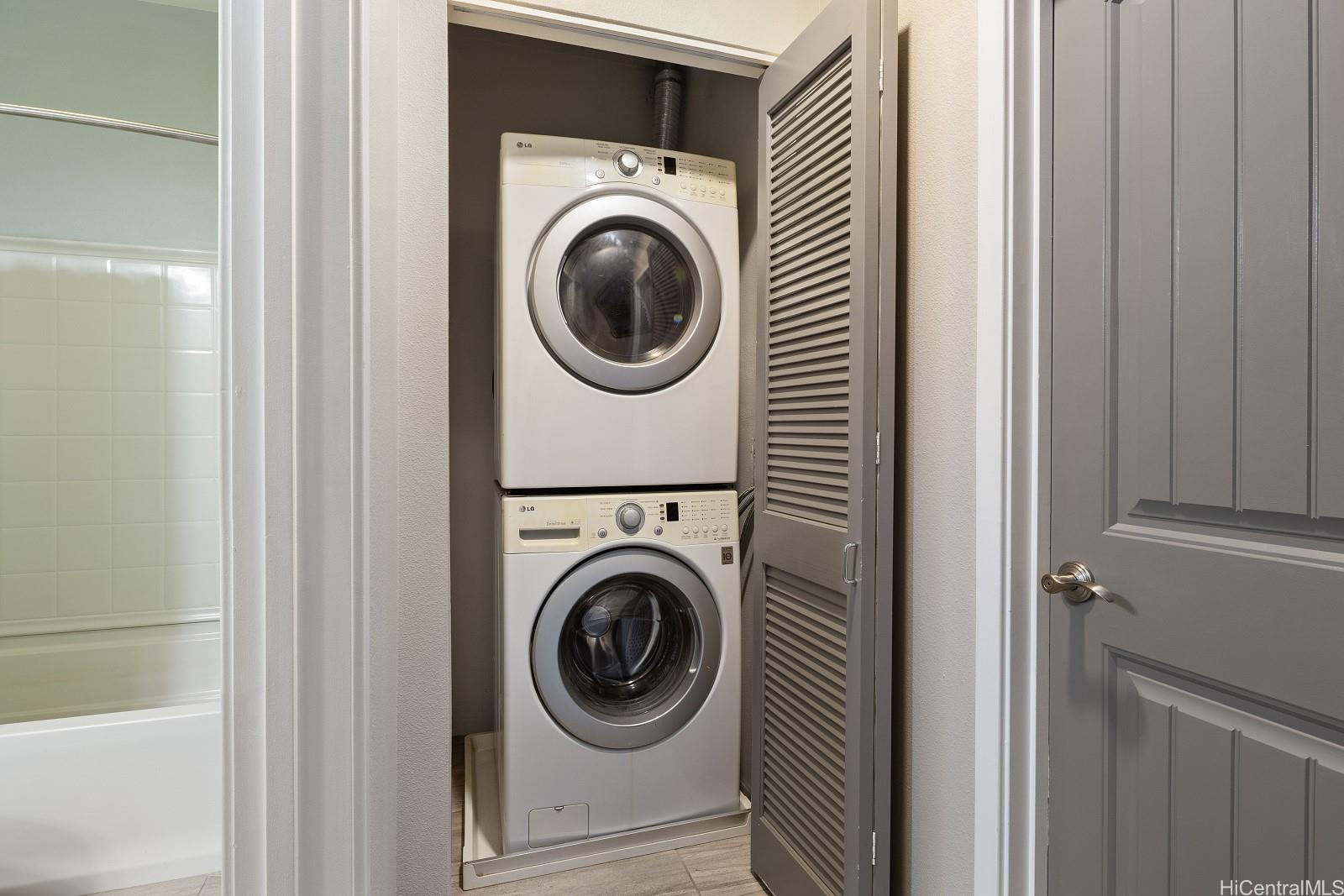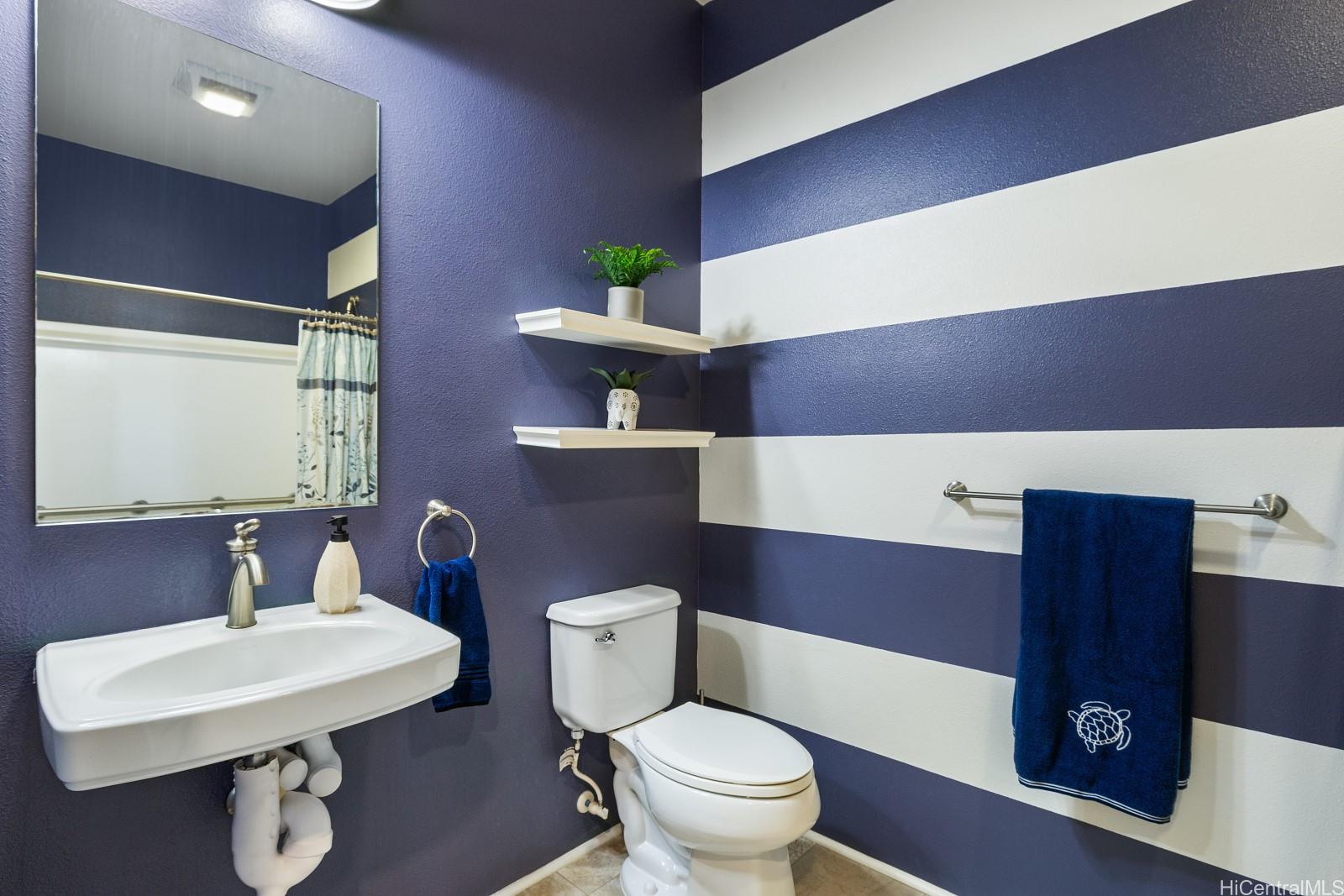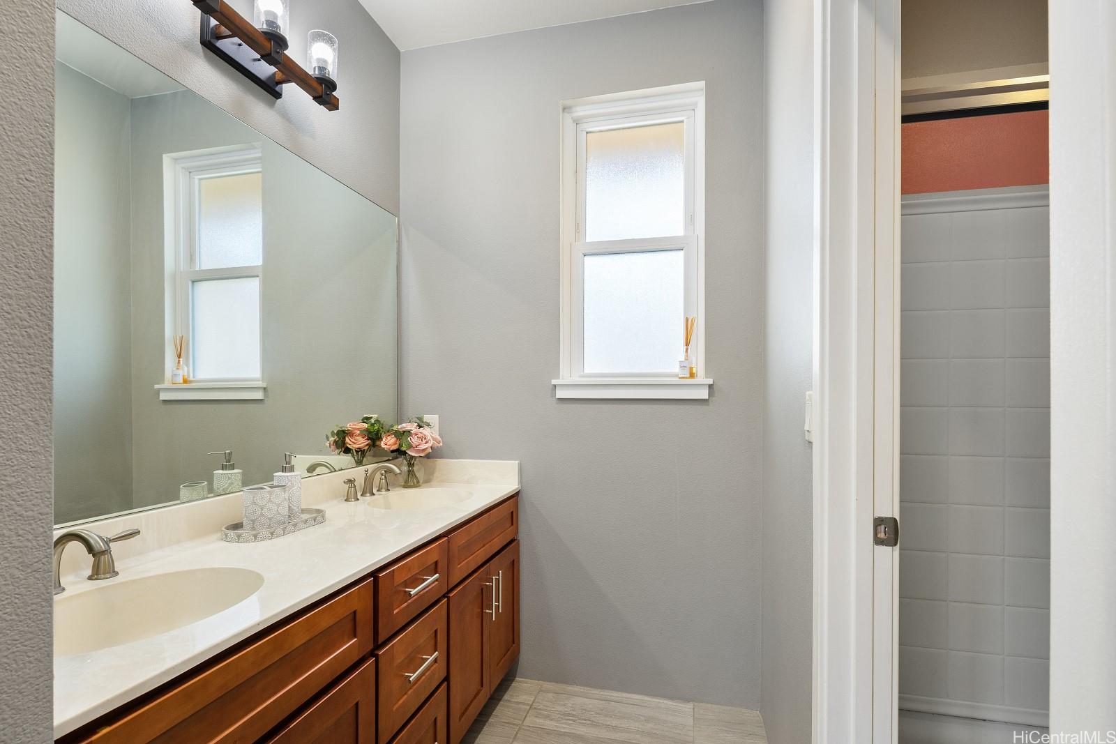 This turn-key flex property in a live-work-play community offers a rare mixed-use opportunity, ideal for both residential living and business use. Designed for versatility, this home features a separate ground-level entry into your "flex" space, perfect for a home-based business, retail space, office, or guest suite with a separate bedroom, full bath, lanai/yard space, and its own dedicated parking. The main living is on the second floor, with 2 bedrooms, 2 full bathrooms, washer/dryer and it's own covered lanai. The kitchen is thoughtfully upgraded with quartz Silestone countertops, stainless steel appliances, backsplash, and a stylish tiled accent peninsula wall. Plantation shutters throughout and custom lighting adds a refined touch, while split AC units provide comfort year-round. The flex area on the first level can be blocked off for privacy, but there's also stairs connecting it to the second level for those seeking extra space to live and entertain. Additional highlights include a 1 car garage for additional security and storage, and a total of 3 additional deeded parking stalls. This is a potential short sale, and if so, will be subject to lender approval.