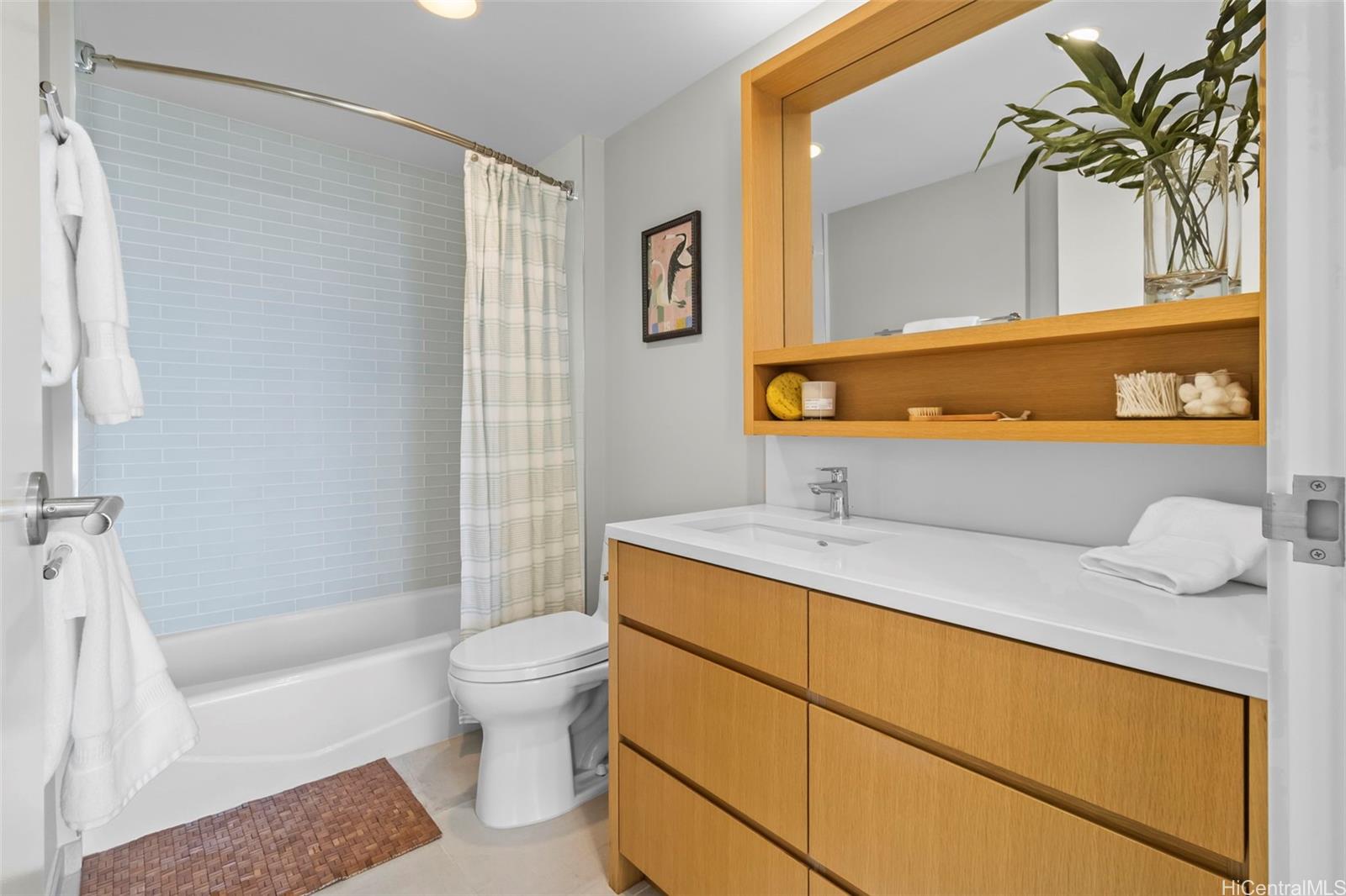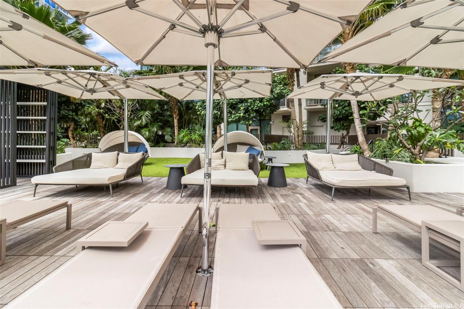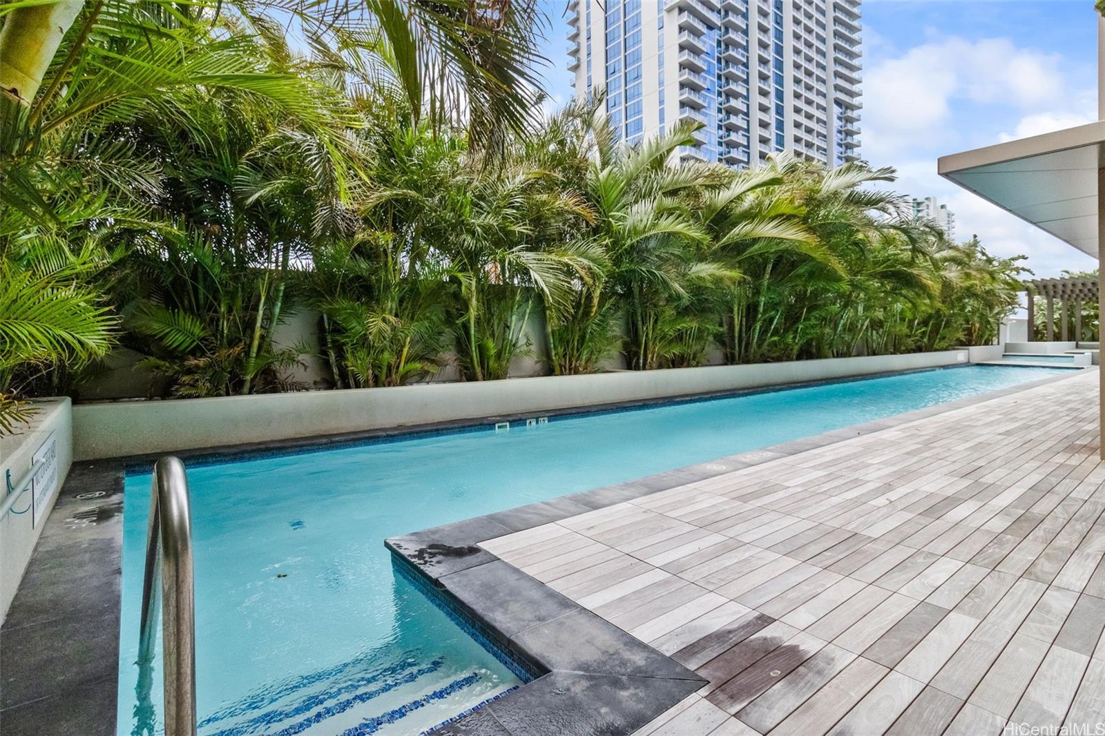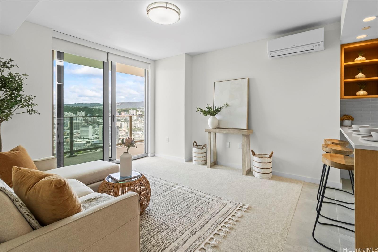 Experience elevated urban living at Sky Ala Moana West, one of Honolulu’s newest and most sought-after residences. This beautifully appointed 1-bedroom, 1-bath home showcases stunning ocean and city views, complemented by a bright, open-concept design and sophisticated finishes throughout.The thoughtfully designed layout features a sleek modern kitchen with premium appliances, seamlessly flowing into the living area—ideal for both comfortable everyday living and effortless entertaining. Step out onto your private lanai to enjoy true indoor-outdoor living while taking in Honolulu’s vibrant skyline and coastal views. Resort-style amenities elevate the experience with a swimming pool, lap pool, saltwater spa, fitness center, sauna, private dining room, BBQ pavilions, poolside cabanas, playground, and dog park—offering a lifestyle that feels like a year-round retreat. Perfect for an owner-occupant seeking modern island living or an investor looking for a highly desirable property in a prime location. Ideally situated across from Ala Moana Center and just a short distance to Ala Moana Beach Park, Waikiki, dining, shopping. Enjoy the best of easy island living in the heart of Honolulu.