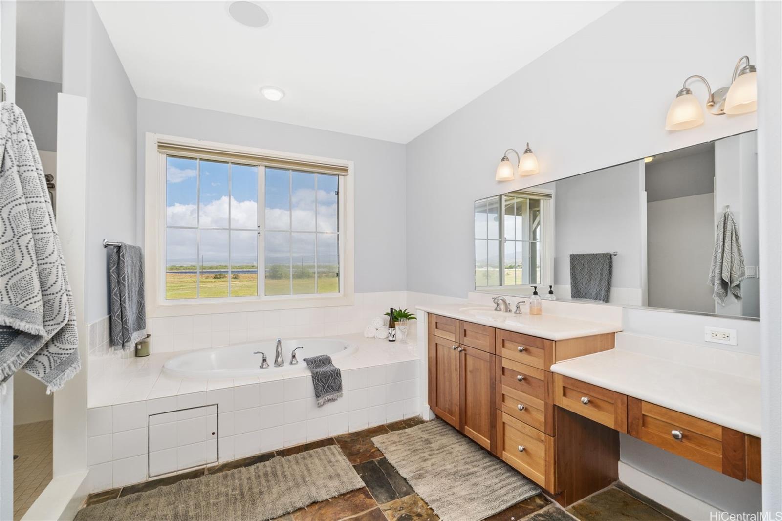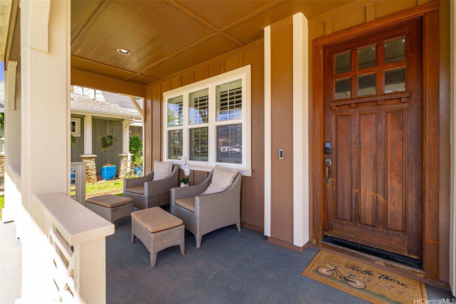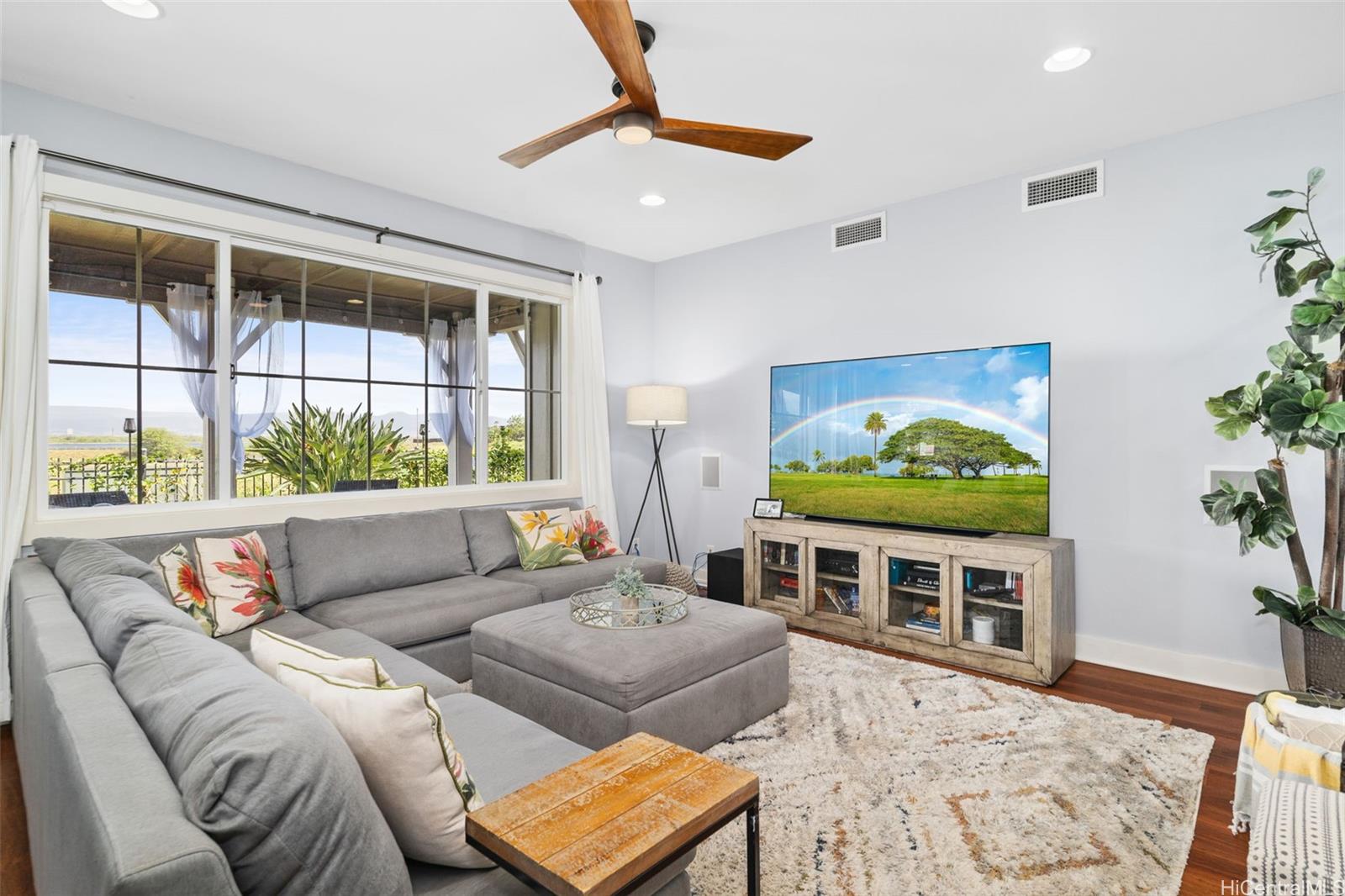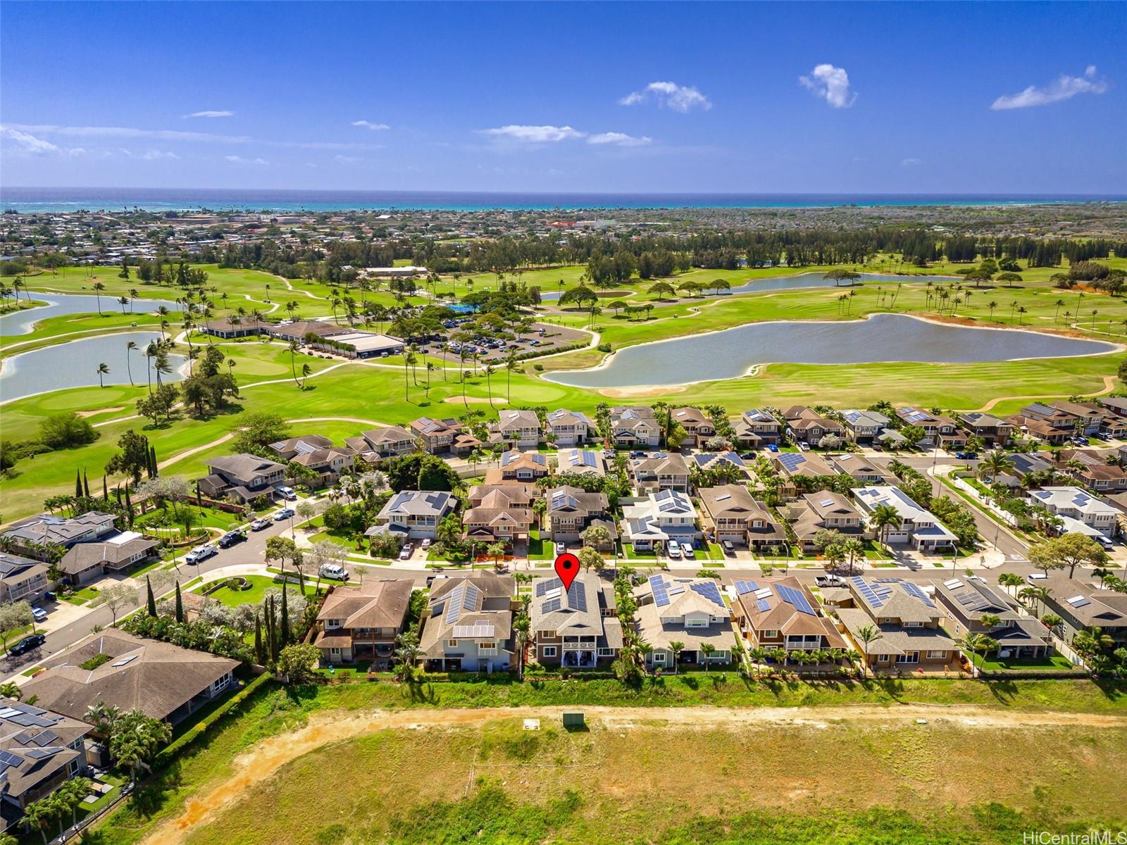 Welcome to Haleakea, one of the premier neighborhoods on the Ewa Plains, with wide sidewalks, larger lots and executive style homes including this jewel! Just over 2600 sq ft of space gives you 4 bedrooms and 3 full baths, including 1 full bath and bedroom on the main floor. The large kitchen will become the heart of your new home with the adjoining dining area and family room creating a hub for daily life. The main floor also features a large front room that can be a formal sitting room, children’s playroom, tv room or gym. Let’s not forget outdoor space...an inviting front porch to greet guests, a side lanai for a barbecue grill, smoker or party space and a large back lanai, perfect for relaxing in the evening and enjoying the mountain views. Upstairs, you’re greeted with a spacious landing that leads to the bedrooms and primary suite. On the second floor you also have a porch overlooking the front of the house and a lanai from the primary bedroom that overlooks the green space behind the house. Wait! There's more...a BRAND NEW AC, newer roof, 34 OWNED solar panels, 2 batteries and EV charger. Check out this beautiful home! Photos were taken prior to tenants moving in.
