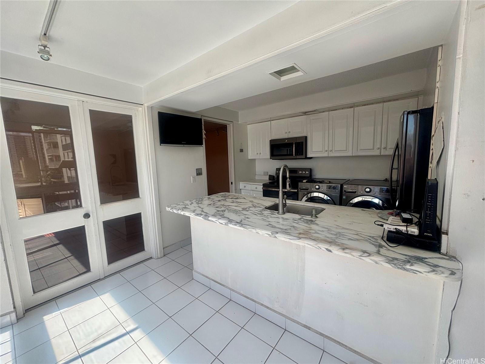 2 bed, 2 bath, 1 parking in the Palms, Waikiki. This unit layout is very flexible with one bedroom and bathroom having the possibility for it's own entrance. Unit needs work. To be sold As Is.
