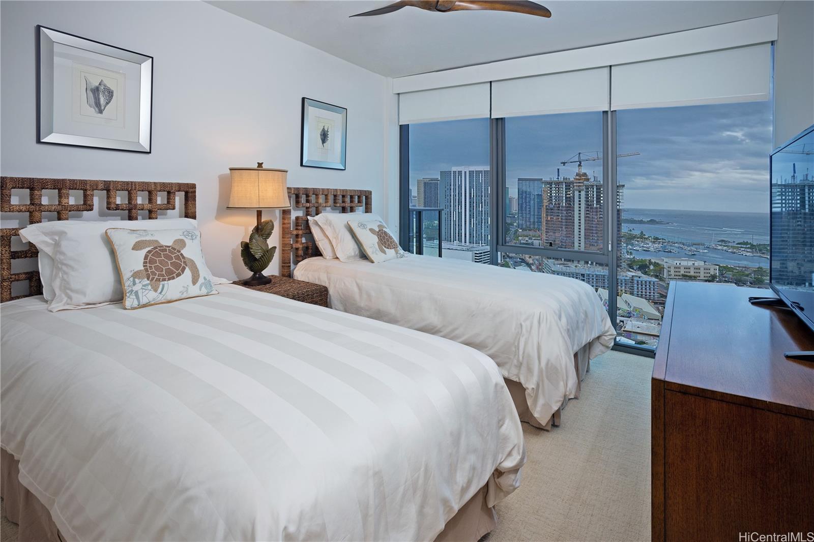 ザ・コレクションにあるこの素晴らしい3ベッドルーム、2バスルームのユニットで、楽園への第一歩を踏み出しましょう。日の出と日没の両方を堪能できる理想的なロケーションにあるこの東向きの物件は、比類のないオーシャンビューを提供します。初代オーナーによって完璧に保存され、トミーバハマ、インスピレーション、CS Woなどの高級ブランドの家具で設えられたこの物件は、ドアを開けた瞬間から快適さと贅沢さを実感できます。メインスイートにはカスタムクローゼットがあり、オープンプランのリビングスペースには大きなラナイとウォークインパントリーが備わっています。ユニットには屋根付き駐車場2台分とガレージ内の追加の収納ロッカーが含まれています。居住者は、スイミングプール、ホットタブ、バーベキューエリア、パーティールーム、フィットネスセンター、ドッグパークなどの一流のアメニティも利用できます。通りの向かいにはカカアコのソルトがあり、ホールフーズ、Hマート、ダウン・トゥ・アースなどの食料品店も近くにあります。活気あふれるホノルルのダウンタウンからわずか数ブロックの距離にあるこの物件は、見逃せないライフスタイルの機会を提供します。