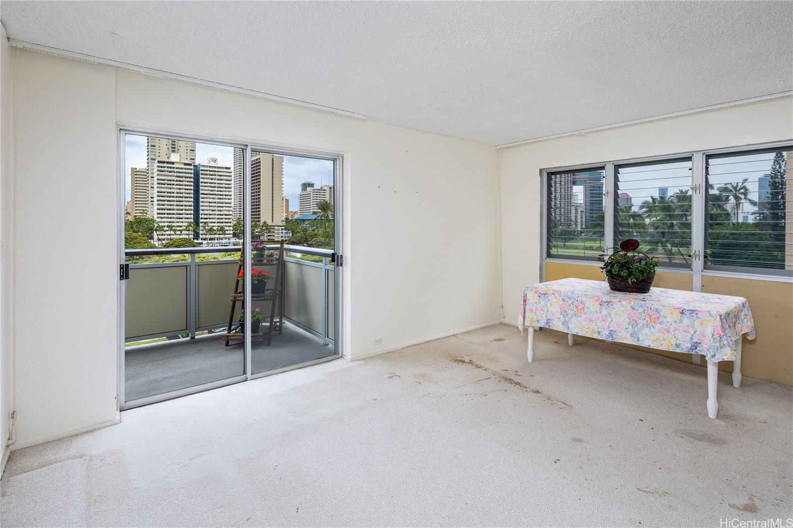 Desirable corner 2-bedroom, 1-bath end unit with excellent natural light and cross-ventilation, featuring brand-new windows and stunning views of the Waikiki skyline, Diamond Head, Ala Wai Park, and the Ala Wai Canal. The end-unit layout offers added privacy and an open, airy feel throughout. Ala Wai Cove is a pet-friendly, elevator building. The unit includes a dedicated parking stall on the second floor and a personal storage locker conveniently located down the hall in the laundry room. Enjoy a highly walkable location with easy access to Ala Wai Park, Ala Wai elementary school, paddling clubs, a public garden, scenic walking and running paths, and close proximity to the University of Hawaii, 'Iolani School, and world-famous Waikiki. The unit is vacant and ready for your personal touch. Building has approved infrastructure improvements that will enhance long-term value. First open house will be this Sunday April 19th from 2:00pm-5:00pm.