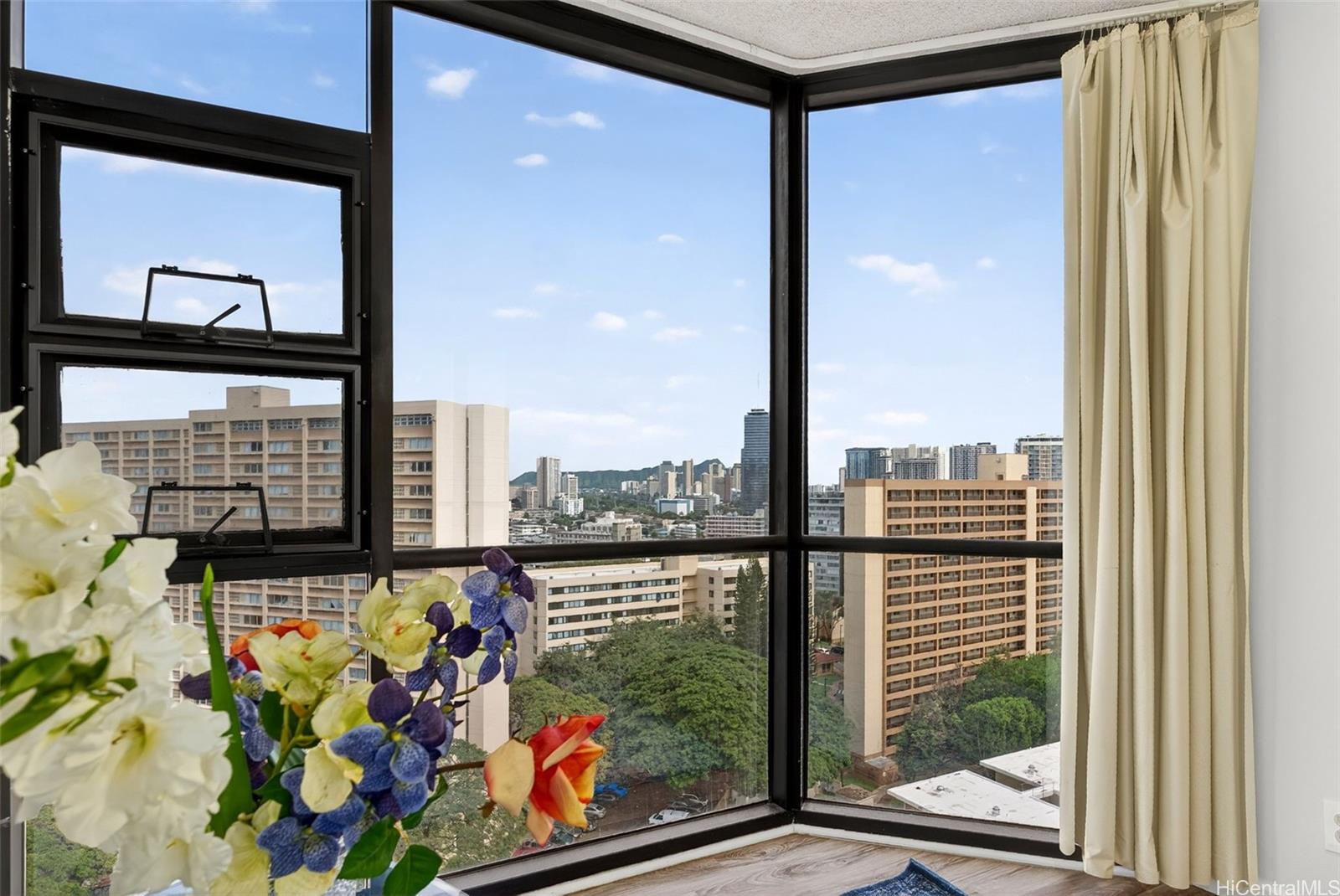 Modern and Spacious 2-Bedroom Living with 2 parking in the heart of town. Renovated in 2018 with luxury vinyl plank, quartz countertops, cabinets and more! Enjoy amazing views from the mountain to city to Diamond Head with floor-to-ceiling windows. Pet friendly with sprinkler system. Amenities include: BBQ areas, club house, pool + jacuzzi, additional outdoor spaces. Located off the main Keeaumoku St for quiet and more private living. One block from all Keeaumoku area has to offer at, from restaurants, shops, Don Quixote, and more. Few minutes from Ala Moana Shopping Center.