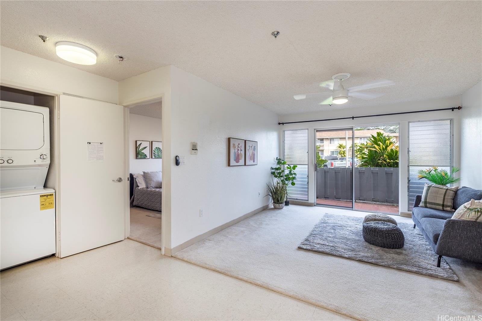 Welcome to Olaloa, Mililani’s highly sought-after gated senior community, where active adult living meets island-style comfort. This spectacular 1-bedroom, 1 bathroom, ground floor unit is tucked away in a quiet, well-maintained complex and offers comfort, convenience, and a relaxed island lifestyle. Enjoy the bright natural sunlight and airy living space with cool tradewinds that flow throughout the unit. The functional kitchen with updated cabinets and open layout make daily living easy, while the private lanai is perfect for your morning coffee or evening breeze. Located in a peaceful, well-landscaped community, Olaloa offers exceptional amenities including a community center, fitness room, library, garden areas, walking paths, laundry facilities, and meeting spaces. Conveniently situated near Mililani Town Center, shopping, dining, parks, medical offices, and public transportation, everything you need is just minutes away. Experience the best of Mililani living in a safe, friendly, and active adult community. Don’t miss this opportunity to make Olaloa Unit 11E your new home!