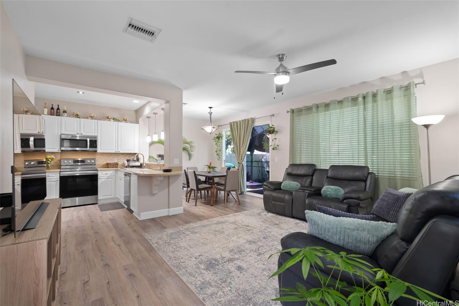 Step into the perfect blend of comfort, space, and island convenience in this beautifully designed four-bedroom home. Filled with natural light, the open-concept layout creates a warm and inviting atmosphere—ideal for both everyday living and effortless entertaining. Enjoy your own private wraparound fenced yard, perfect for relaxing evenings, weekend gatherings, or simply giving you that extra outdoor space that’s hard to find. This home also features a spacious two-car garage, additional driveway parking, and ample guest parking nearby—making hosting easy and stress-free. Located just a short stroll from one of two private community pools, a large recreation area, and exclusive party rooms, you’ll feel like you’re living in your own resort-style community. Convenience is everything—you’re minutes from Laulani Village Shopping Center, beautiful beaches, golf courses, dog parks, and playgrounds, offering the ideal balance of lifestyle and accessibility. The association fees cover sewer, water, homeowner’s insurance, community maintenance, and pool access—providing a truly low-maintenance and worry-free living experience.VA loan assumption may be available with a small gap!