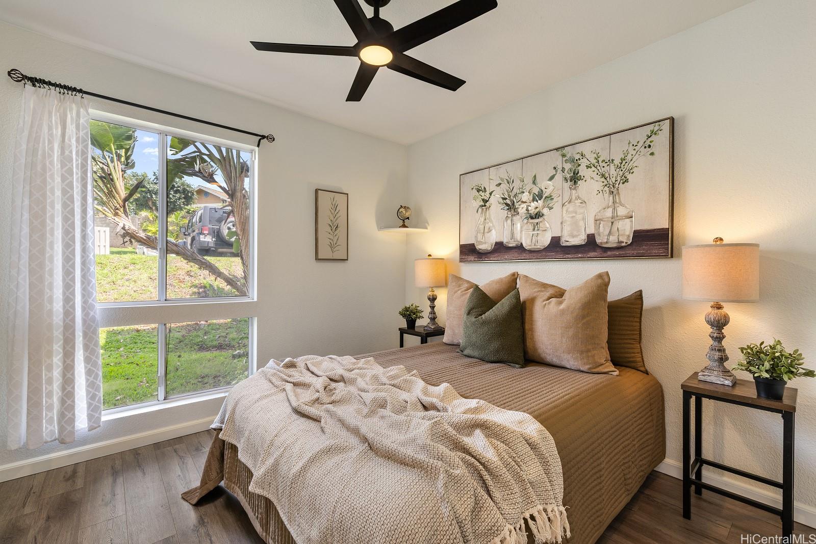 アッパー・マカキロの高級タウンハウスコミュニティ、ウエストビュー・アット・マカキロ・ハイツへようこそ。マカキロのメインストリート、マカキロ・ドライブ沿い、ほぼ最高地点に位置し、一番奥の建物にあるこのユニットは、通り抜け交通がほとんどないため、静かで穏やかな環境をお楽しみいただけます。2ベッドルーム/2バスルームのこのユニットは、742平方フィートの室内面積ながら、ゆったりとした空間が広がります。1階にあるため、広々とした芝生の裏庭と屋根付きパティオエリアがあり、パーティーを開いたり、愛犬や愛猫が自由に走り回ったりするのに最適です。外周に位置する建物のため、背後には広々とした芝生エリアが広がり、開放感あふれる空間が広がります。各ベッドルームはユニットの両端に配置され、2つのバスルームで隔てられているため、プライバシーが最大限に確保されています。建物の正面に1台、向かい側にもう1台駐車できる便利な駐車スペースもご利用いただけます。コミュニティの洗車場とゴミ収集所も駐車場の近くにあります。素晴らしい立地にある、初めてのマイホームに最適です。ぜひお越しください。あ、それから、退役軍人の方なら、3.75%の低金利でローンを引き継ぐことも可能です!