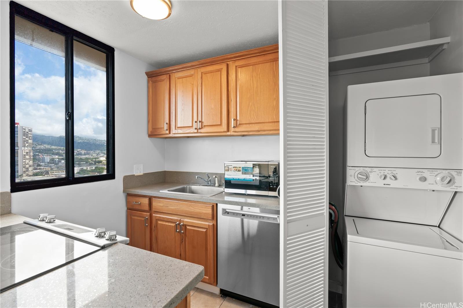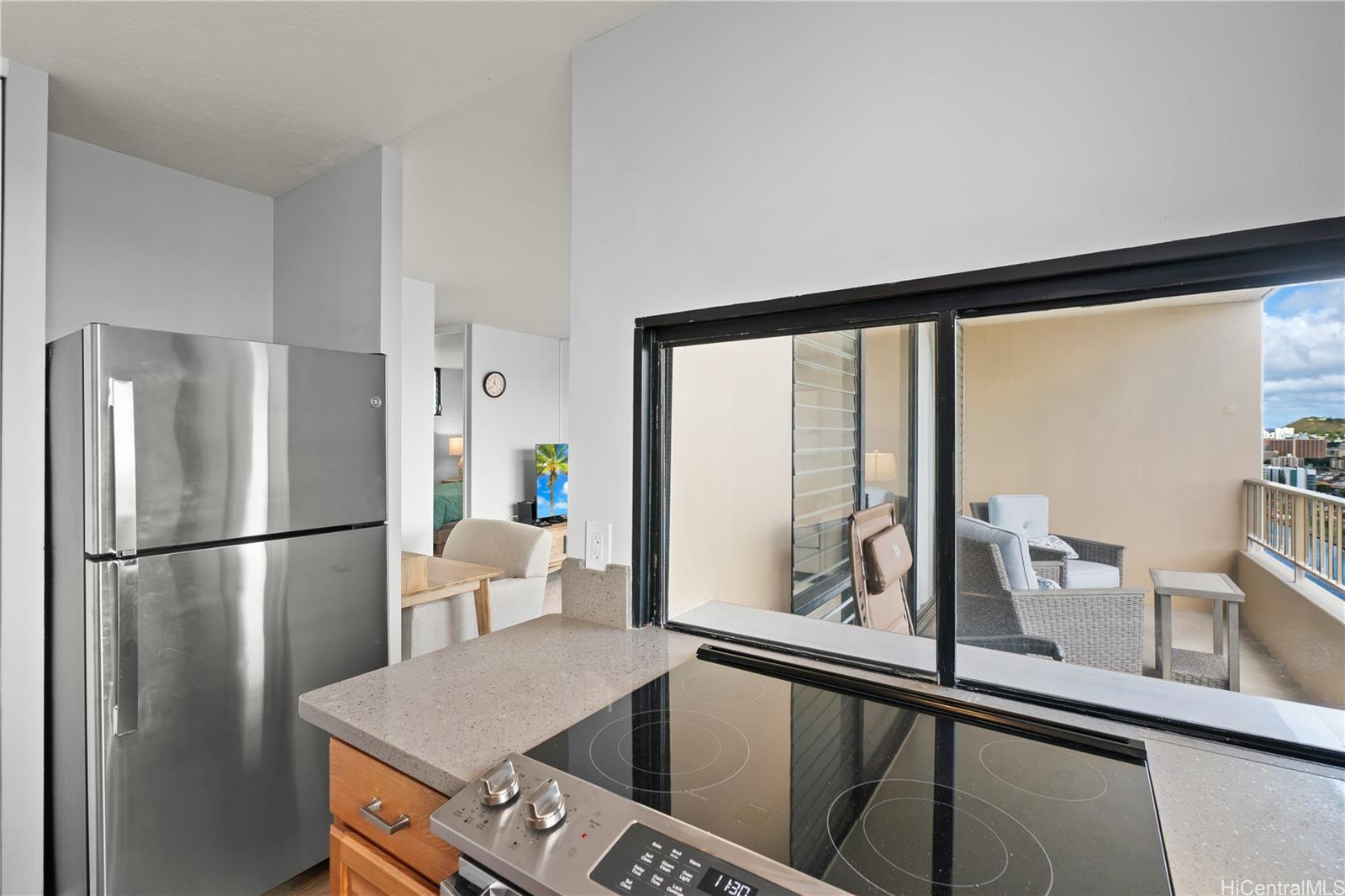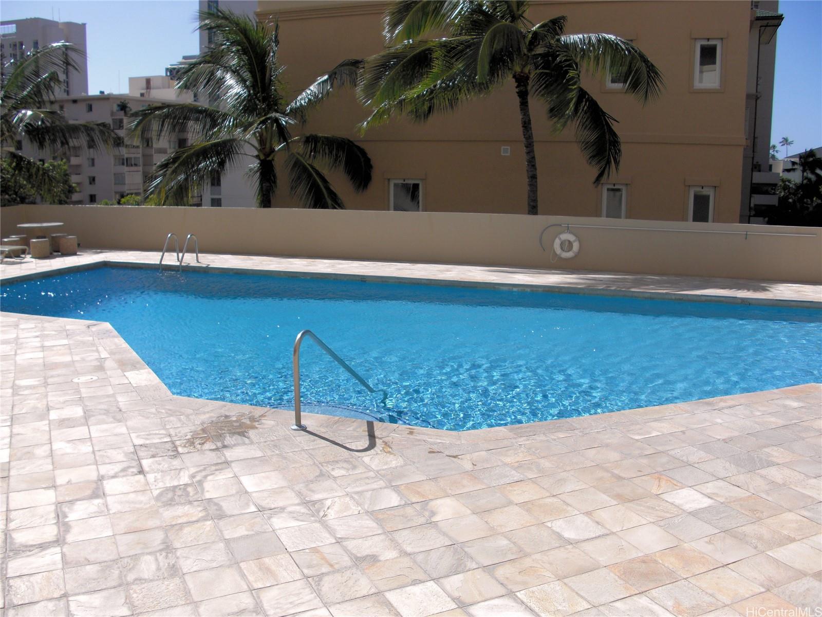 「2121 Ala Wai」は、ワイキキのアラワイ運河沿いに位置するコンドミニアムです。全室が山々に面しており、心地よい貿易風が吹き抜け、快適な居住環境を提供します。広々としたバルコニーからは、アラワイ運河、アラワイゴルフコース、そして緑豊かなコナフアヌイ山脈の絶景をお楽しみいただけます。内装はモダンなグレーとホワイトを基調としたカラースキームで改装され、各ユニットには洗濯機と乾燥機が備え付けられています。駐車場1台分が含まれているため、長期滞在や居住用としても最適です。月々の管理費には電気代が含まれています。さらに、居住者はプール、ラウンジエリア、サウナ、バーベキューグリルなどのアメニティも利用できます。