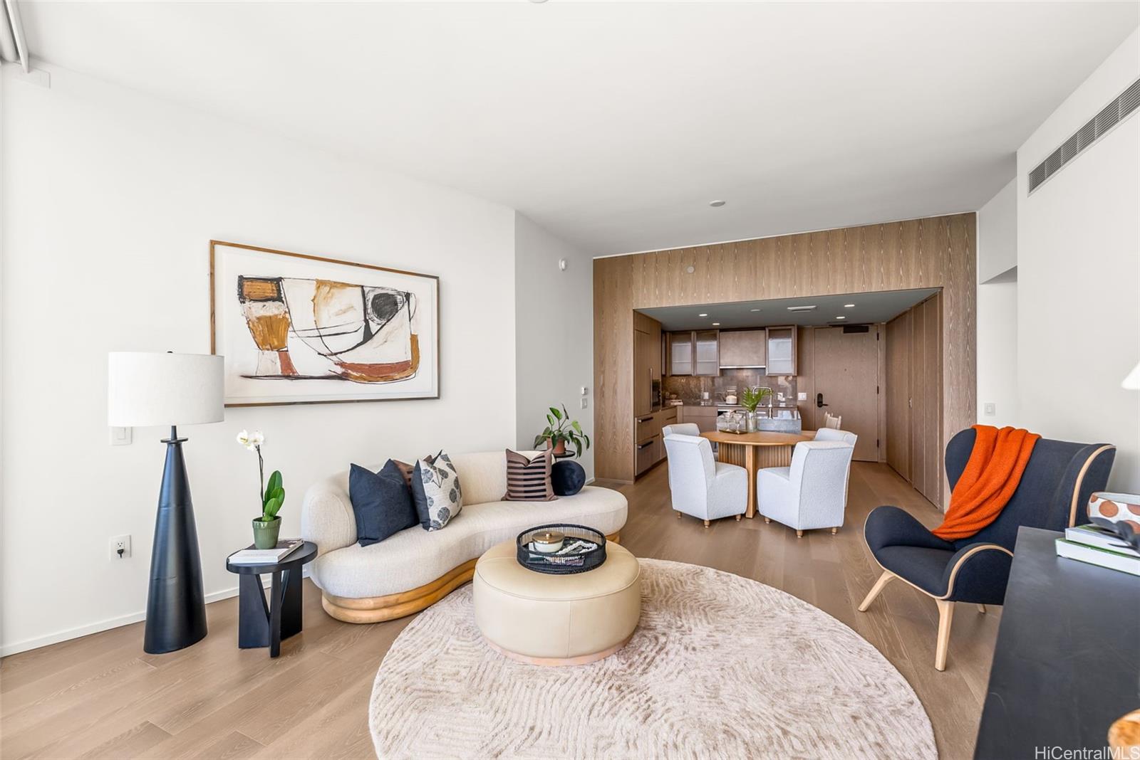 Super VALUE! Wake up & unwind to BEAUTIFUL OCEAN, MARINA, DIAMOND HEAD, PARK & CITY views from this coveted 02 stack—the largest one-bedroom floor plan in the building—positioned on the PENTHOUSE-level 40th floor. Experience luxury as floor-to-ceiling windows fill the home with natural light, highlighting elegant finishes, natural stone countertops, premium Miele appliances, motorized blinds, and a spa-like bath with a large walk-in shower, & custom closet systems. The usable lanai expands your living space to enjoy morning coffee as the sun lights the sky. Situated in Howard Hughes’ award-winning Ward Village, this luxury tower was designed by acclaimed architect Jeanne Gang with interiors by Yabu Pushelberg. Resort-style amenities include a fitness center, swimming pool, two spas, Grand Lanai and lounge, private dining room with chef’s kitchen, BBQ areas, Sunset Lanai, outdoor fitness spaces, a children’s playground, guest suites, a dog park & more. Prime location near flagship Whole Foods, dining, boutiques, Victoria Ward Park, Ala Moana, Waikiki, & the beach via pedestrian bridge. Live the lifestyle you’ve dreamed of in this high-floor home. Curated furnishings are negotiable.