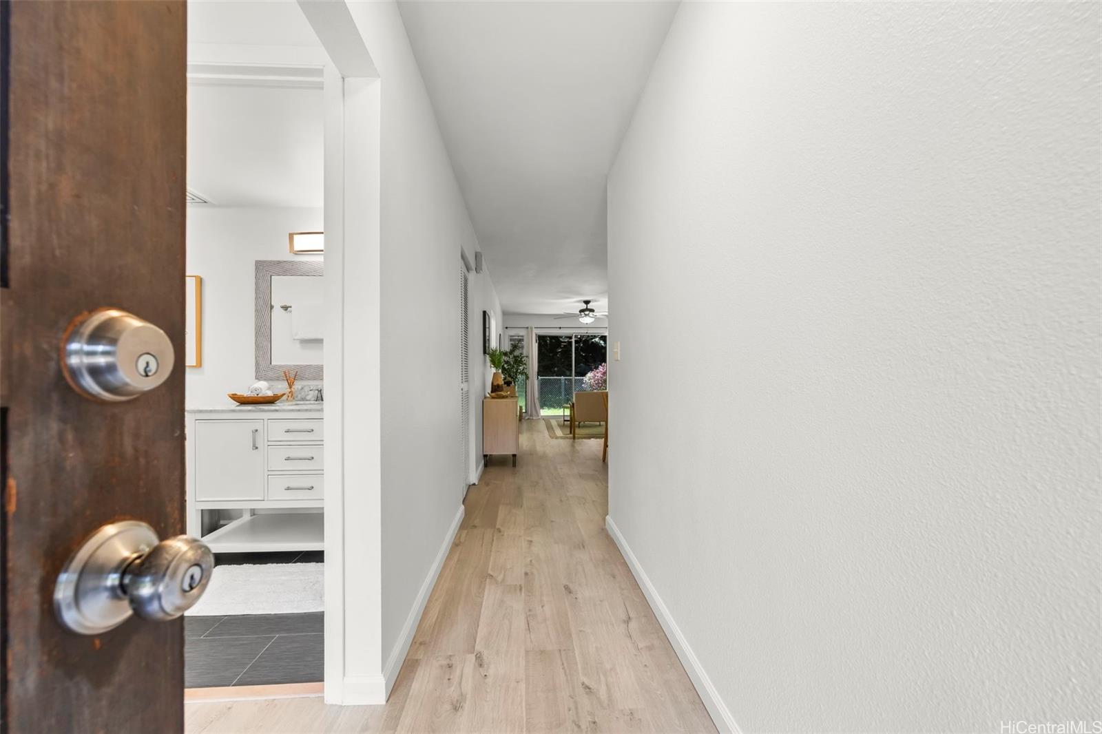 Just listed in Newtown Meadows, a townhouse community nestled in a peaceful valley across from the Newtown Golf Driving Range. This fully renovated ground floor 2-bedroom, 2-bath unit includes two assigned open parking stalls and a private front patio, perfect for morning coffee or relaxing outdoors. The unit features vinyl flooring throughout, window A/C units, a custom closet system in the primary bedroom, dual vanity sinks in the primary bathroom, and additional storage located under the stairs in front of the unit.
