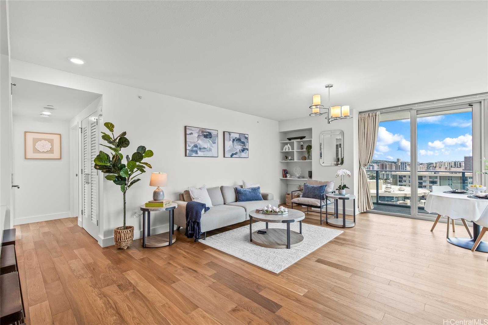 Rare offering at Azure Ala Moana—this premier corner residence includes a private 5’ x 10’ storage room, a highly coveted & costly rarity
