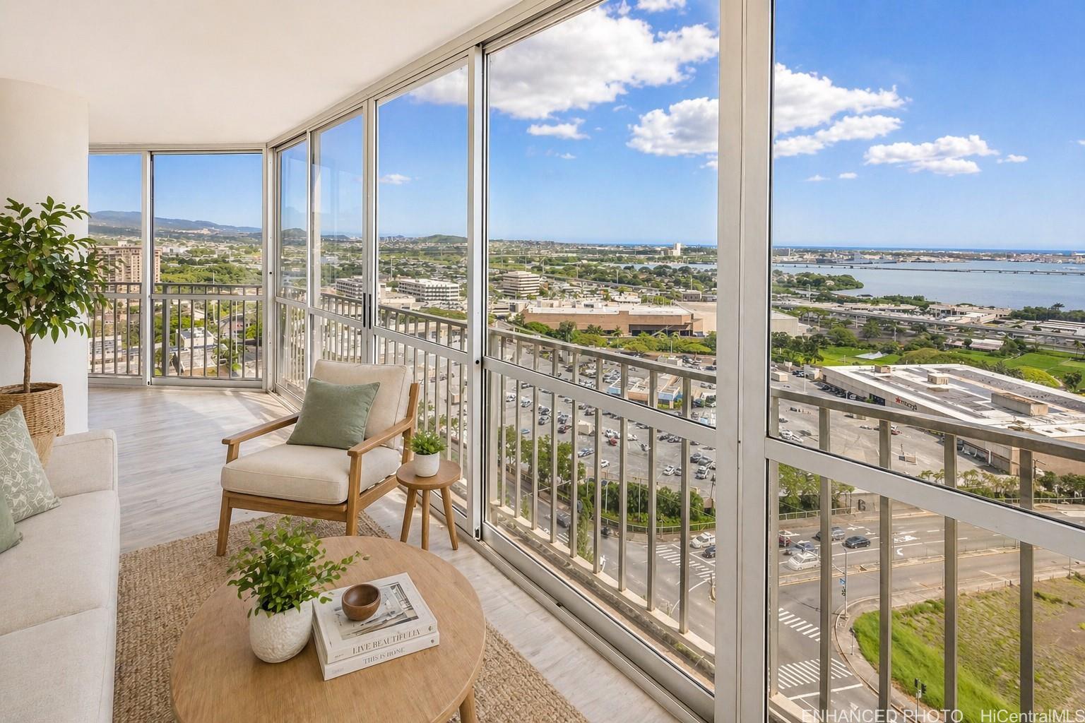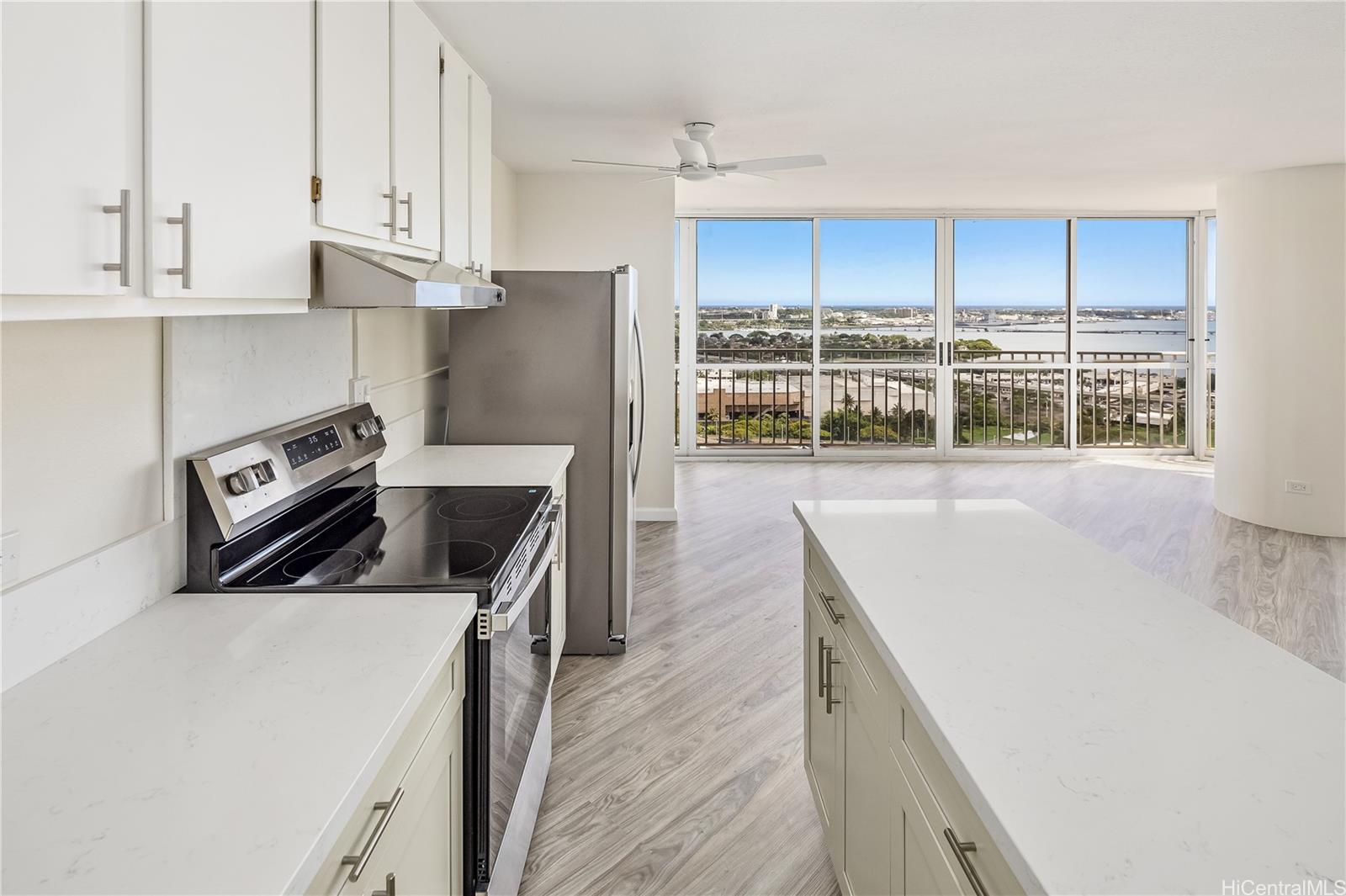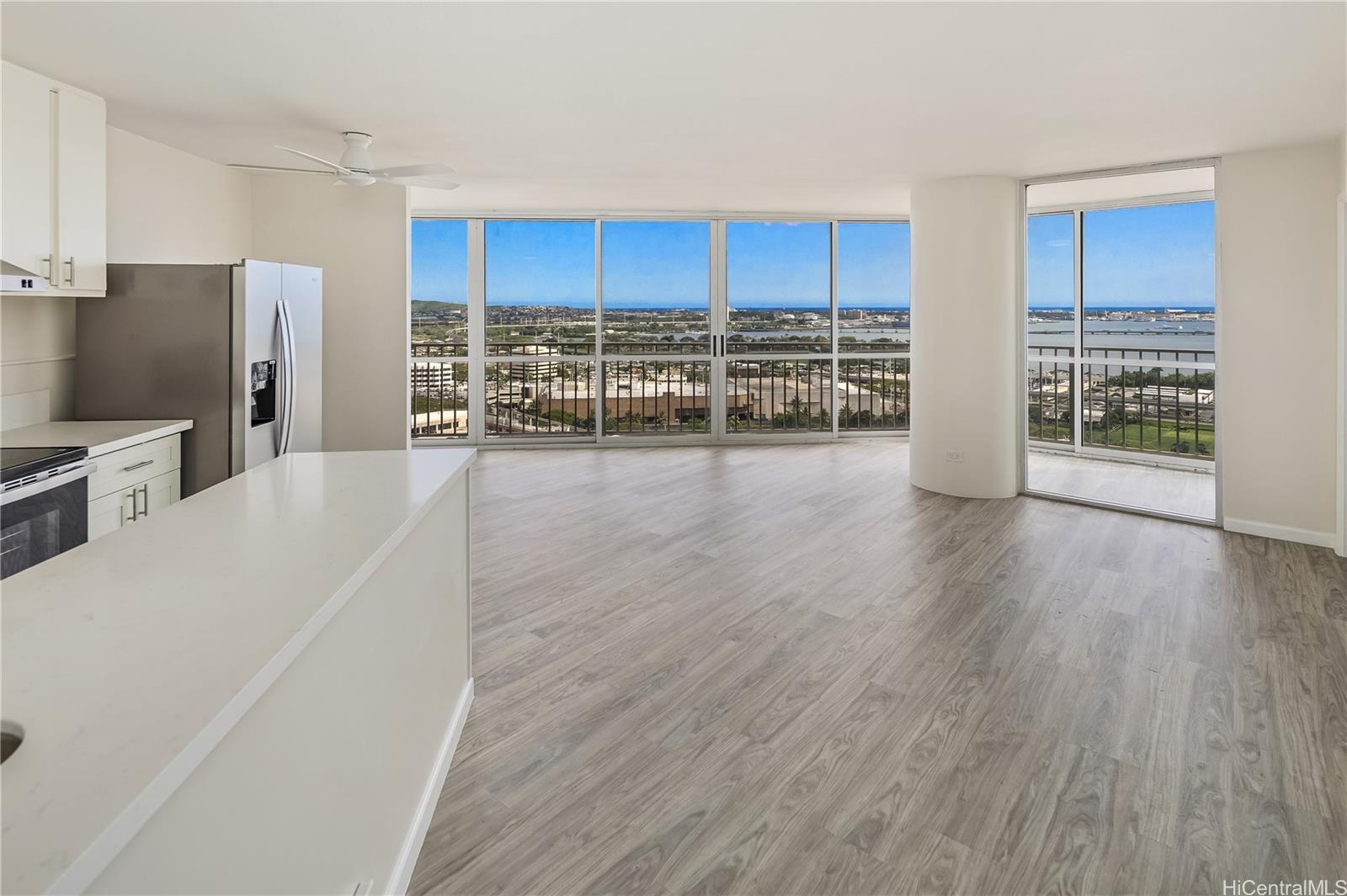 covered parking stalls. It presents a spectacular, priceless view of the coastline, mountains and surrounding areas. This special condo is the essence of comfort, convenience and value. New carpeting and interior painting bring visible sparkle to interior walls and flooring awaiting your personal touches. It is conveniently located across the street from Pearlridge Shopping Center, with quick access to H-1 freeway, new Skyline rail station, airport, Pearl Harbor, schools, banks, Pali Momi Hospital, golfing, bus routes, great restaurants and other nearby businesses. This gated community is pet-friendly (verify), well-maintained, and offers security, onsite resident manager, ample guest parking, spacious pool area, assigned storage locker, trash chute on each floor, 3 elevators, and a BBQ area. Fire safety components are installed in each condo unit to enhance occupant's safety. Condo unit sold "as is". See It Today!