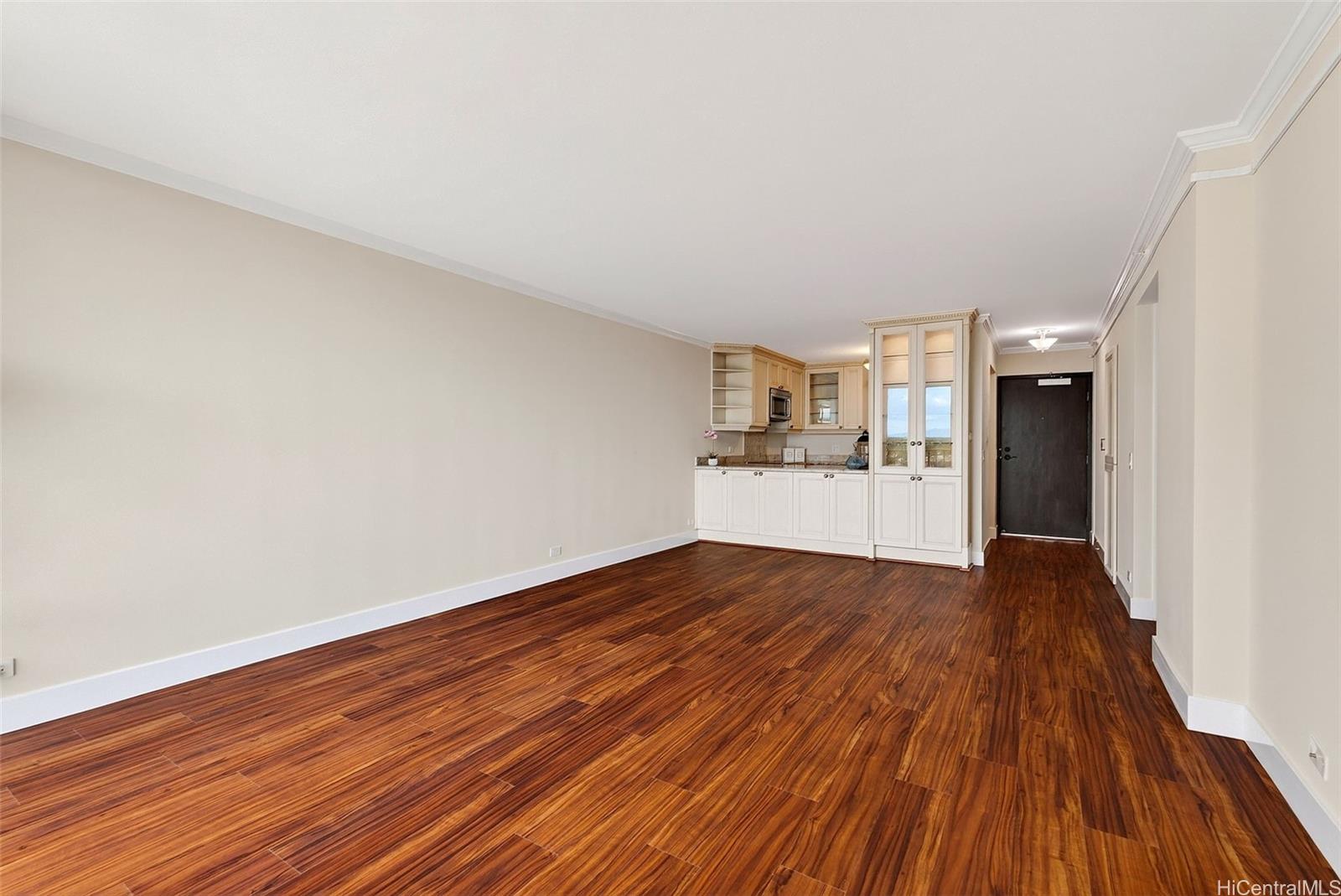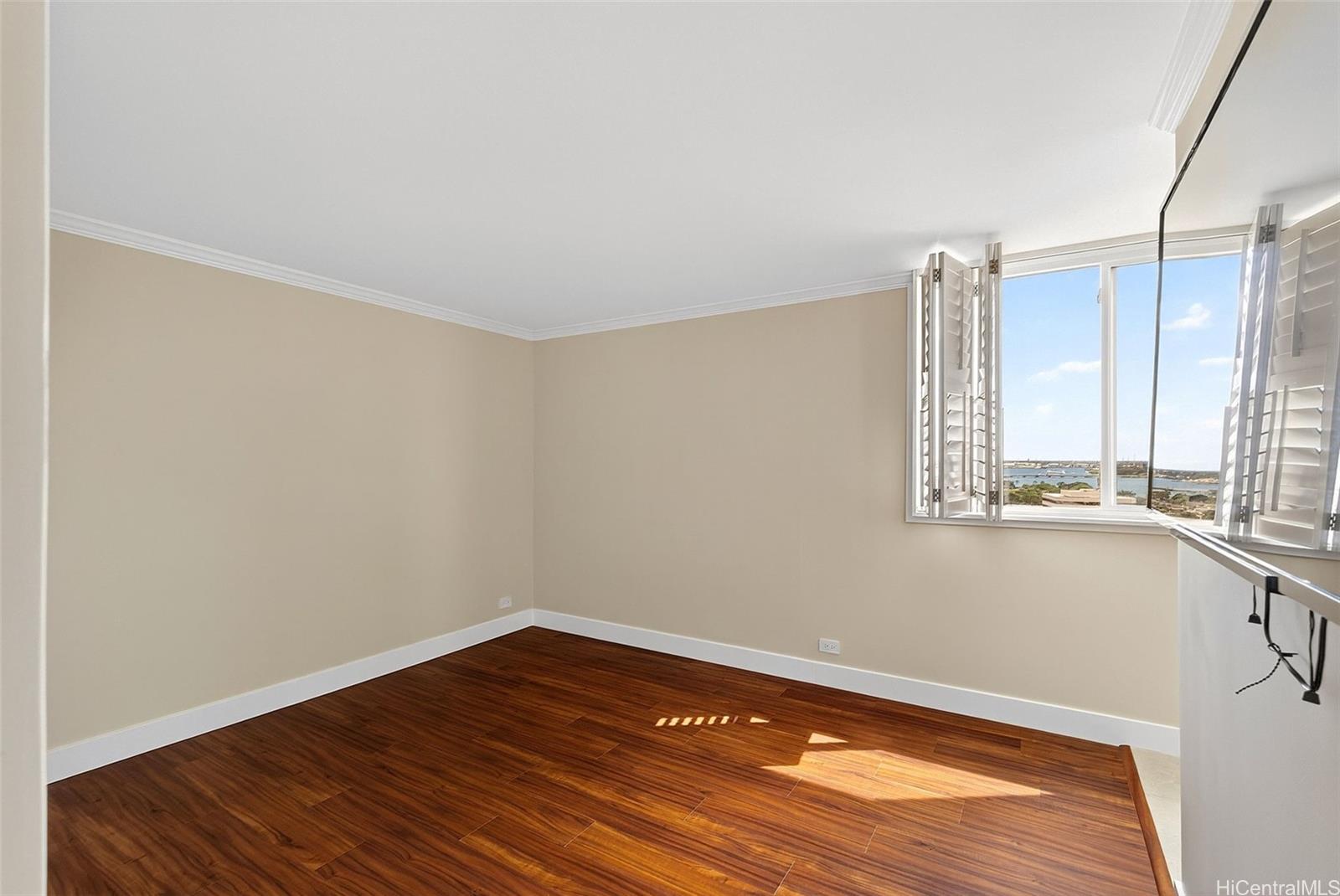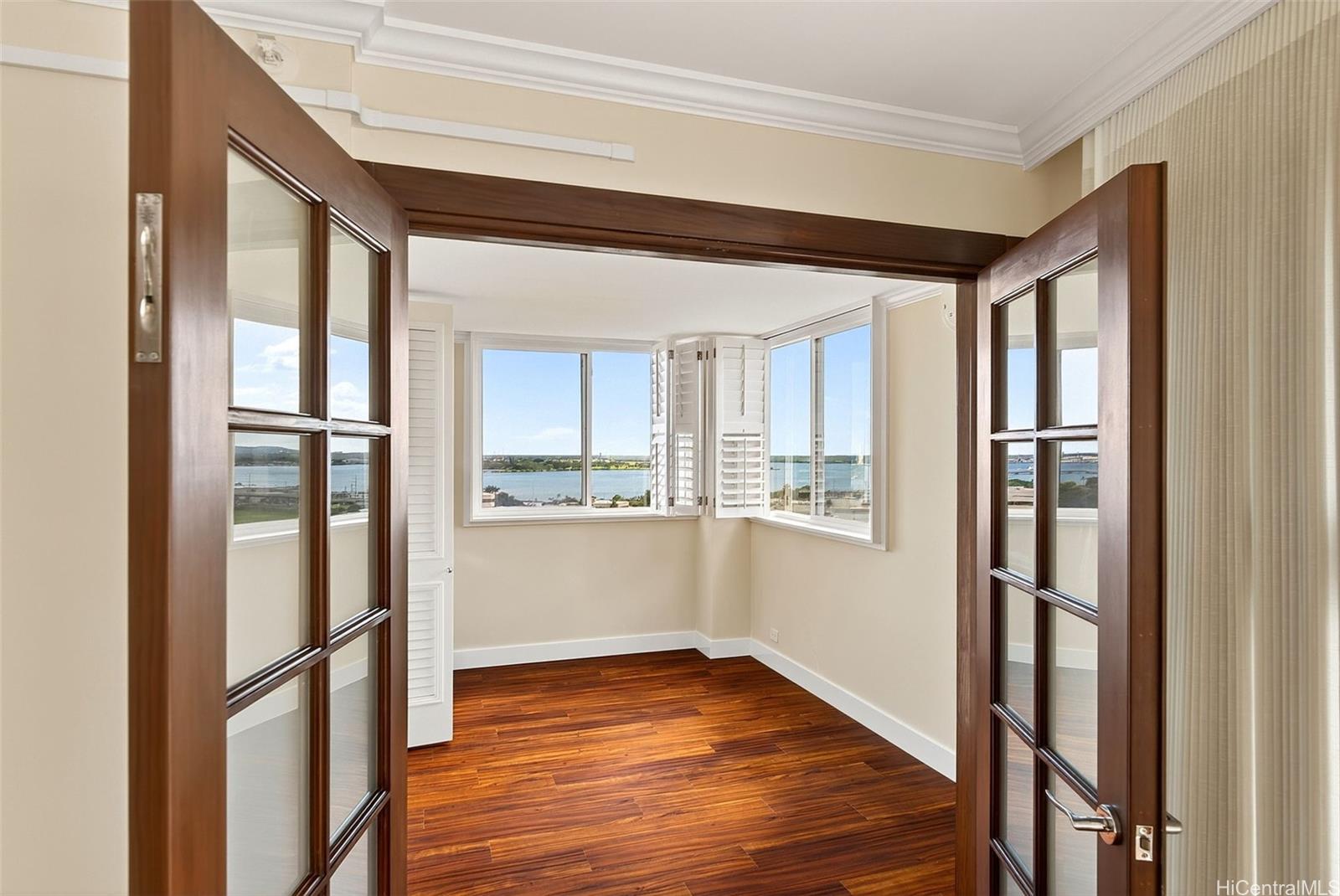 Ocean views from this beautifully updated 2-bed, 2-bath, 1-parking residence at Park at Pearlridge. Experience elevated island living in this high-floor home showcases wide-ranging views spanning the ocean, mountains, and city skyline, enjoyed from the comfort of your private lanai. The open layout is enhanced by rich Koa-style vinyl plank flooring and thoughtful modern finishes throughout. The kitchen features premium appliances—including Bosch cooktop, microwave hood, dishwasher, and a Sub-Zero refrigerator—paired with elegant marble countertops. Additional upgrades include a Miele washer/dryer, custom California Closets, and motorized Hunter Douglas shades for effortless comfort.
