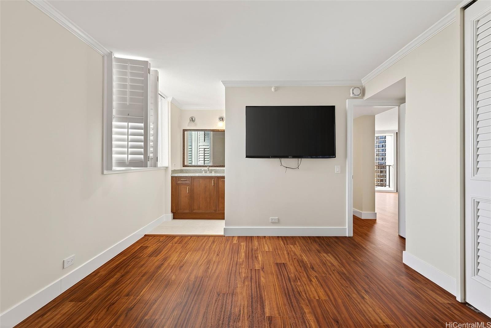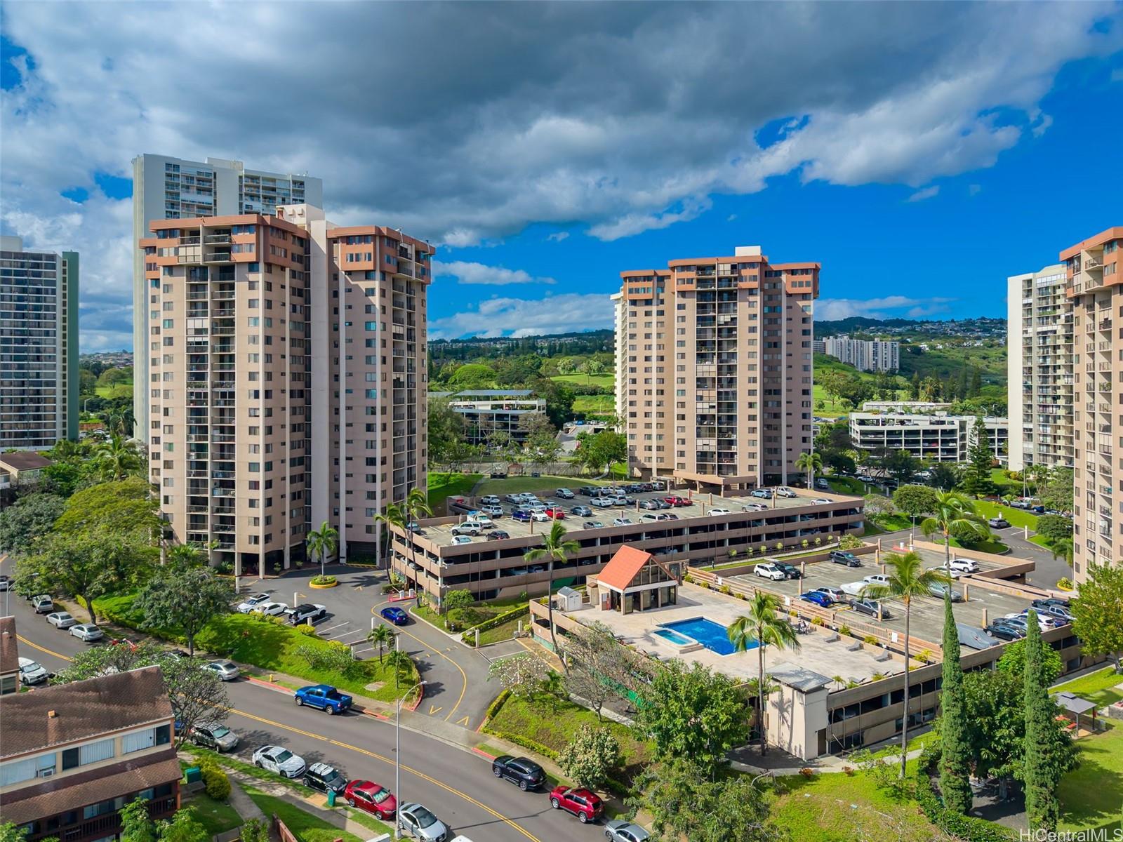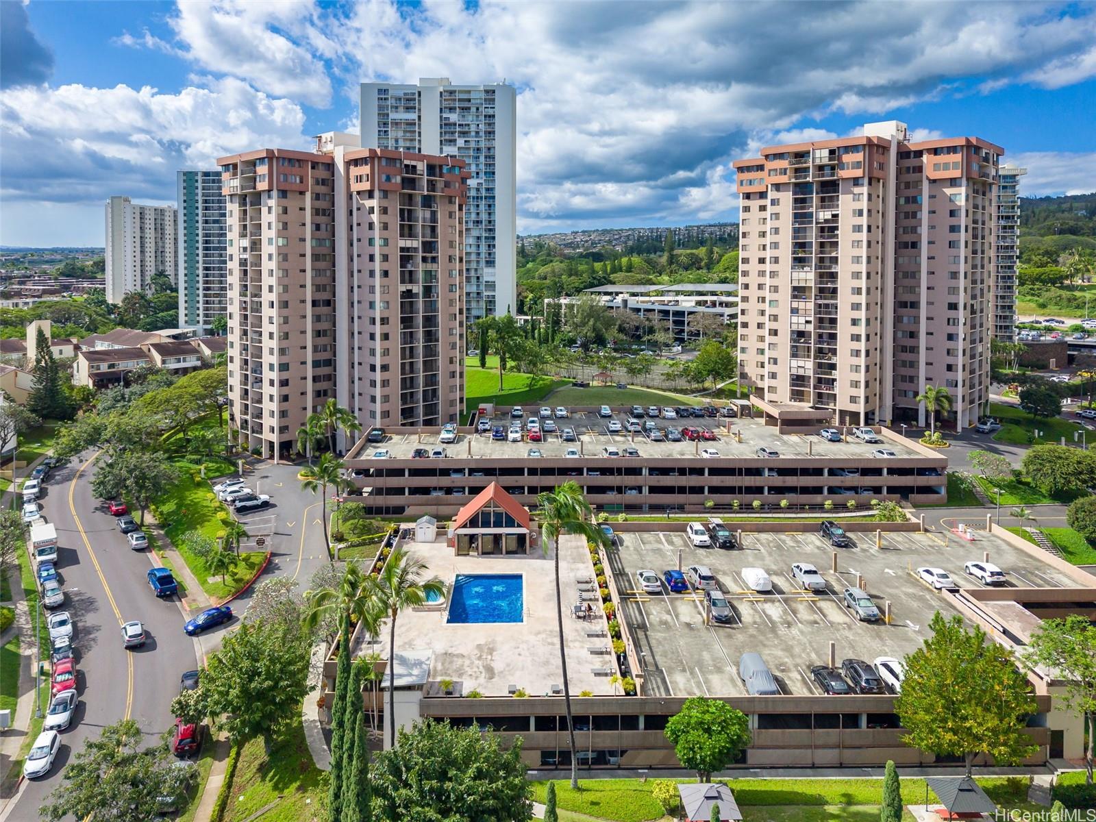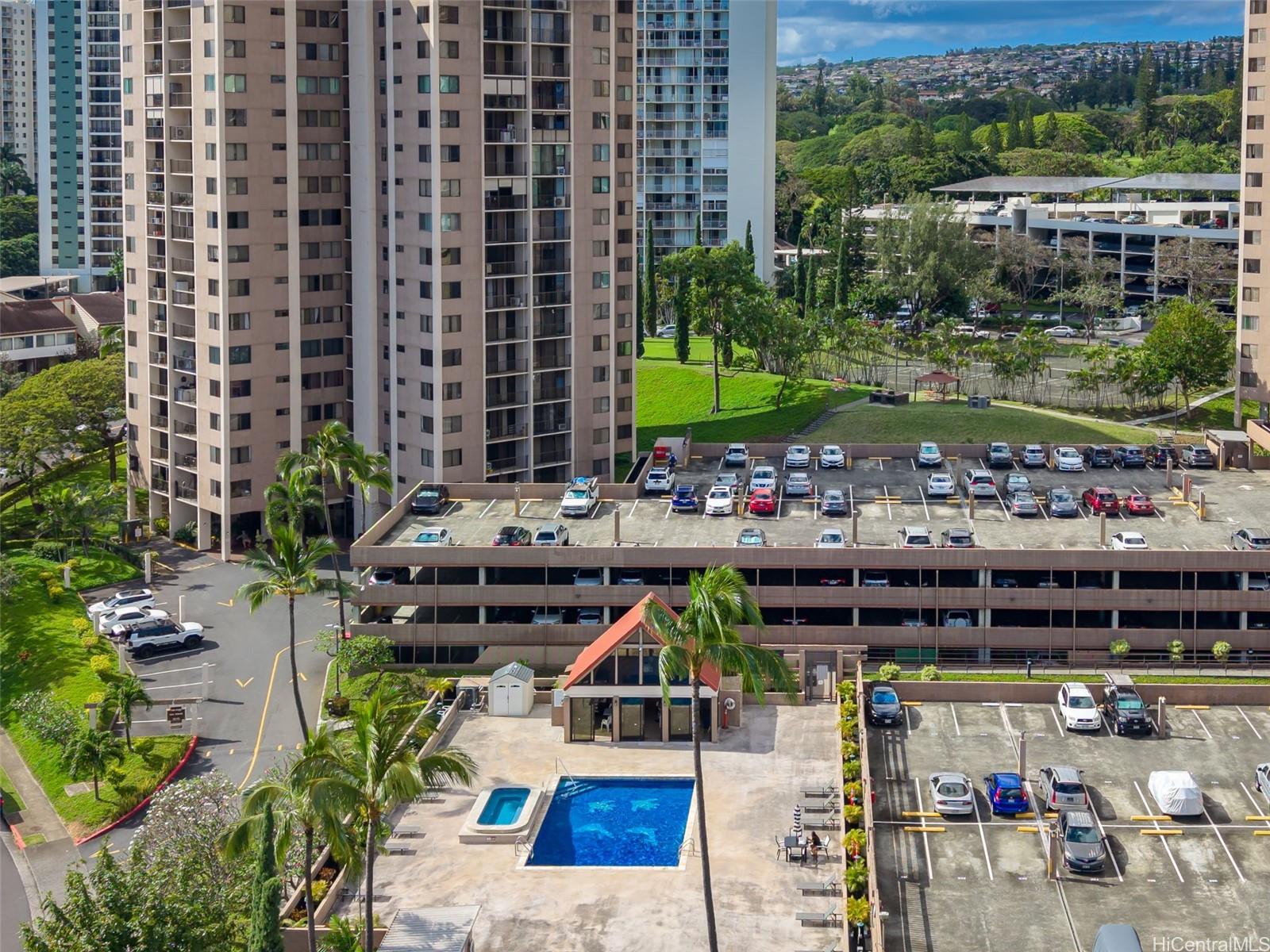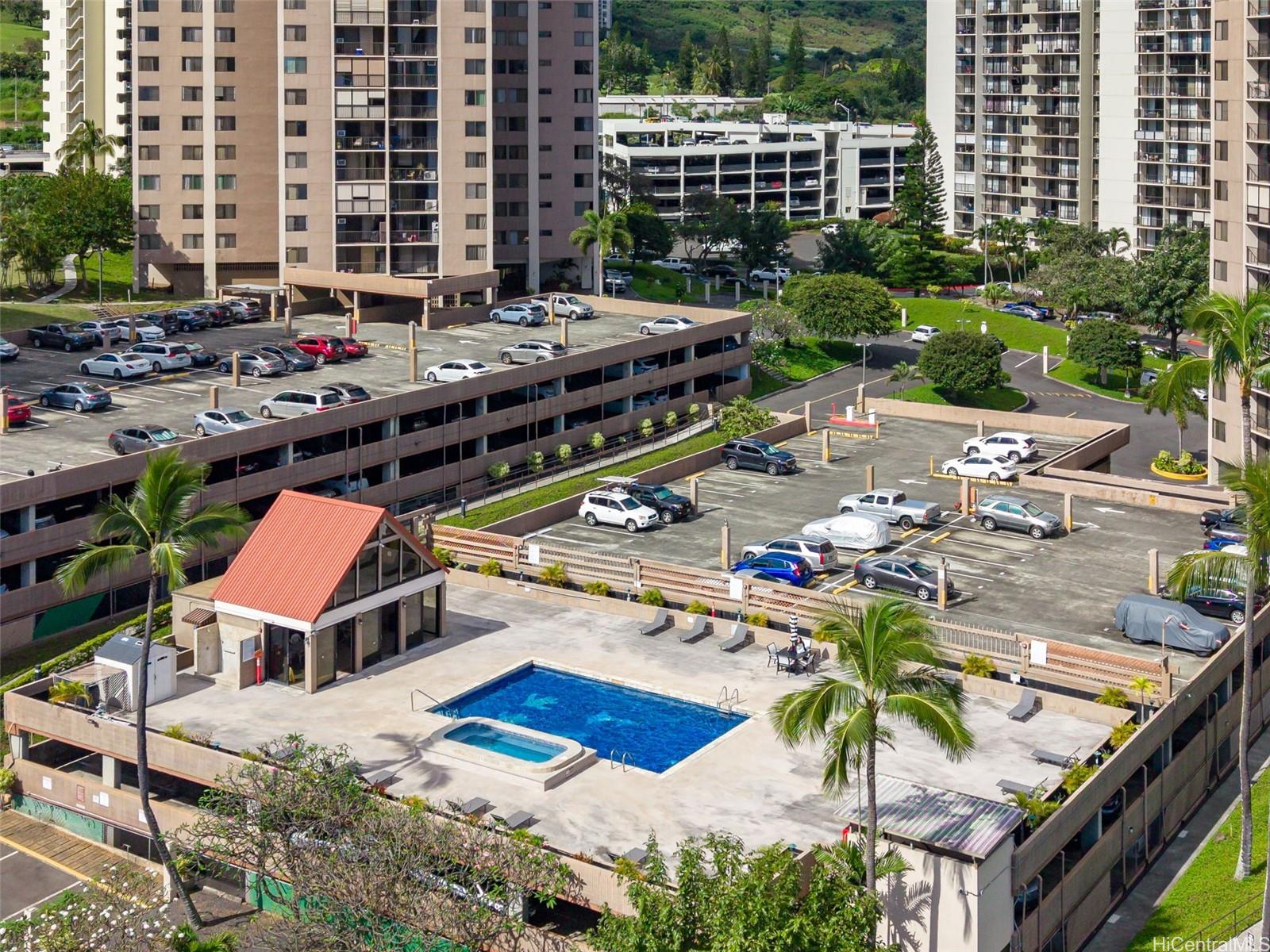 パーク・アット・パールリッジにある、美しく改装された2ベッドルーム、2バスルーム、駐車場1台付きのレジデンスからオーシャンビューをお楽しみください。高層階にあるこの住戸からは、海、山、そして街のスカイラインまで広がる壮大な景色を、プライベートラナイから快適に堪能できます。開放的な間取りは、高級感あふれるコアスタイルのビニール製フローリングと、随所に施された洗練されたモダンな仕上げによってさらに引き立てられています。キッチンには、ボッシュ製のクックトップ、電子レンジ付きフード、食器洗い機、サブゼロ製の冷蔵庫などの高級家電と、エレガントな大理石のカウンタートップが備えられています。さらに、ミーレ製の洗濯乾燥機、カスタムメイドのカリフォルニアクローゼット、ハンターダグラス製の電動シェードなど、快適な暮らしを実現するアップグレードも施されています。アメニティには、プール、バーベキューエリア、テニスコート、セキュリティ付き駐車場、収納スペース、24時間セキュリティが含まれます。ショッピング、レストラン、主要道路へのアクセスも便利で、通勤にも最適です。手入れの行き届いた、すぐにでも快適にお過ごしいただける住まいです。