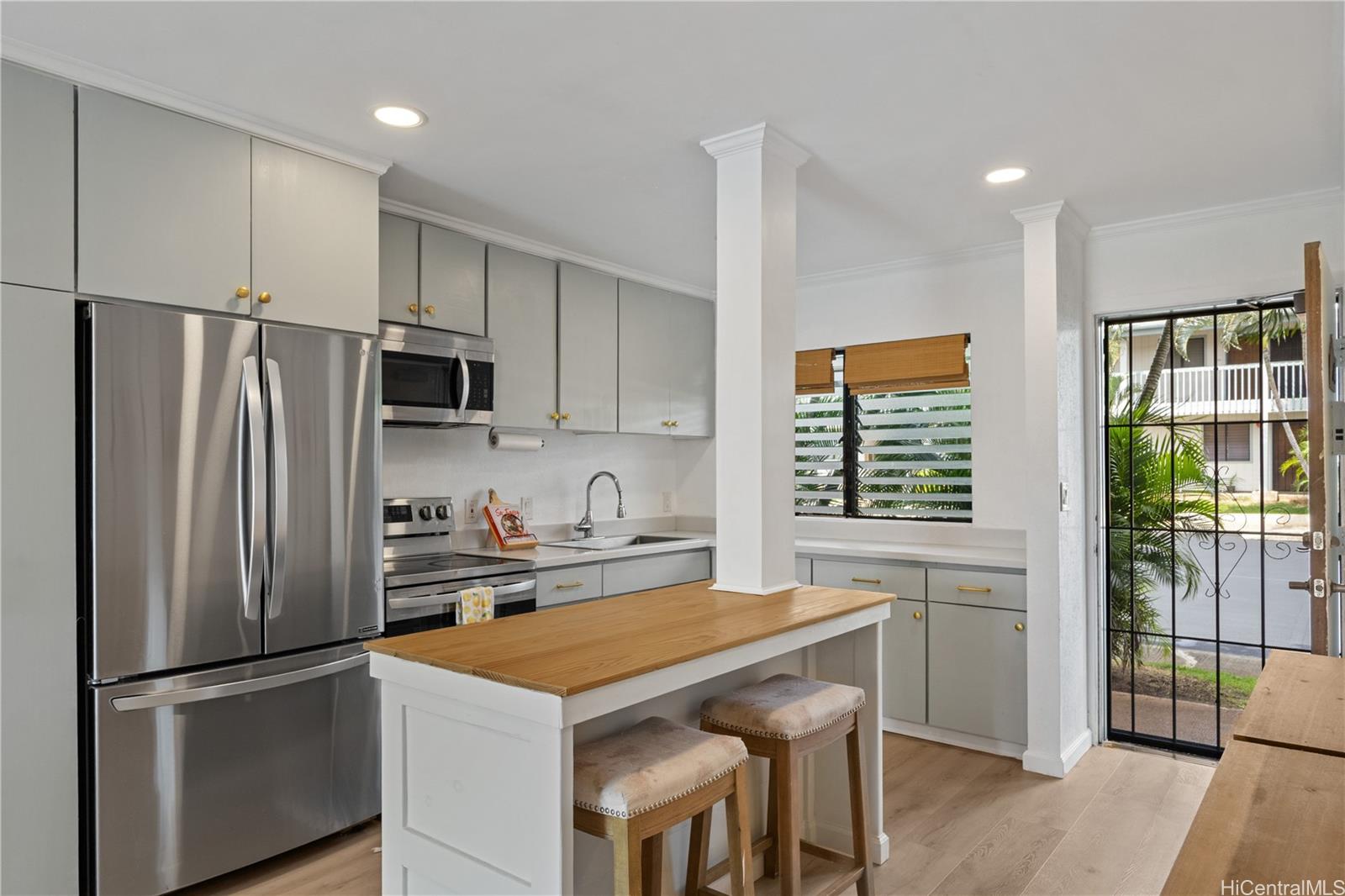 すぐにでも入居可能!パールホライズンズのこの人気の高い1階ユニット(#142)は、パールリッジショッピングセンターからすぐの理想的な場所に位置しています。858平方フィートの快適な居住空間を提供するこの2ベッドルーム、1.5バスルームの住宅には、ユニットのすぐ前に並列の専用駐車スペースが2台分付いています。長年にわたり、このユニットはオープンコンセプトの間取り、高級ビニールプランクフローリング、豊富な自然光、爽やかな風通しなど、センス良く近代化されてきました。リビングルームとベッドルームの両方に窓用エアコンが設置されており、一年中涼しく快適な室内環境を保ちます。広々とした室内は、忙しい一日の後にリラックスできる空間を作り出し、ユニットには便利な洗濯機と乾燥機が完備されています。パールホライズンズには、スイミングプール、サウナ、バーベキューエリア、クラブハウスなどのリゾートスタイルのアメニティが備わっています。ショッピング、学校、高速道路へのアクセスに便利な中心部に位置するこの住宅は、島暮らしと都会の利便性の完璧なバランスを提供します。ペット可、すぐに快適な生活を始められます。今すぐ内覧のご予約を!