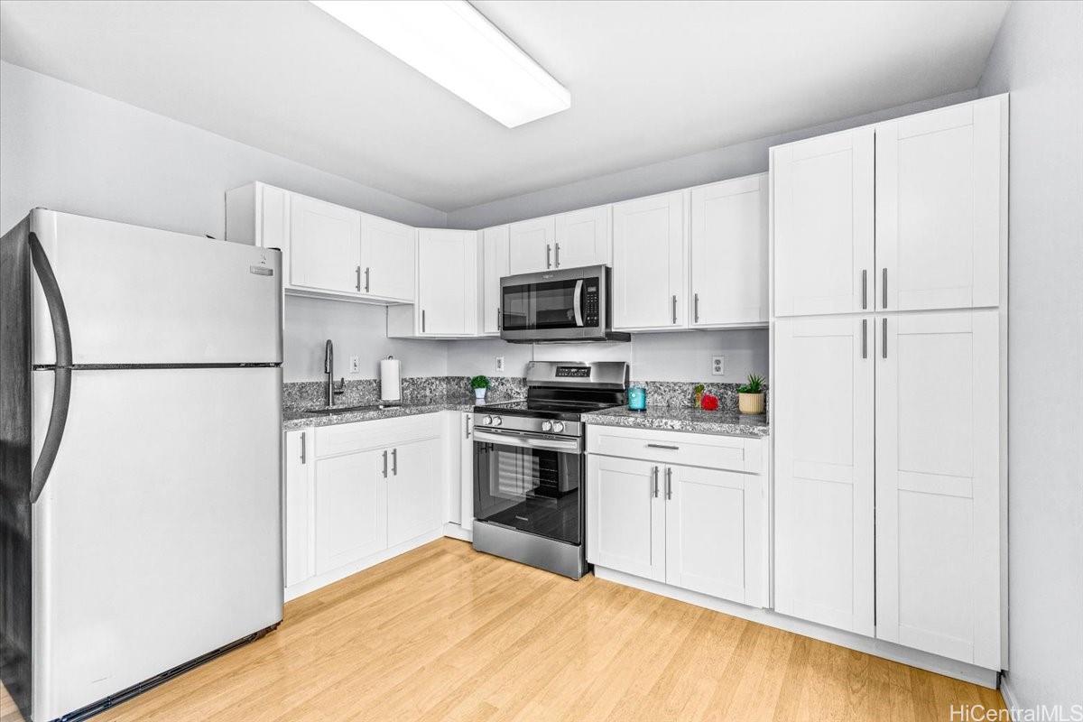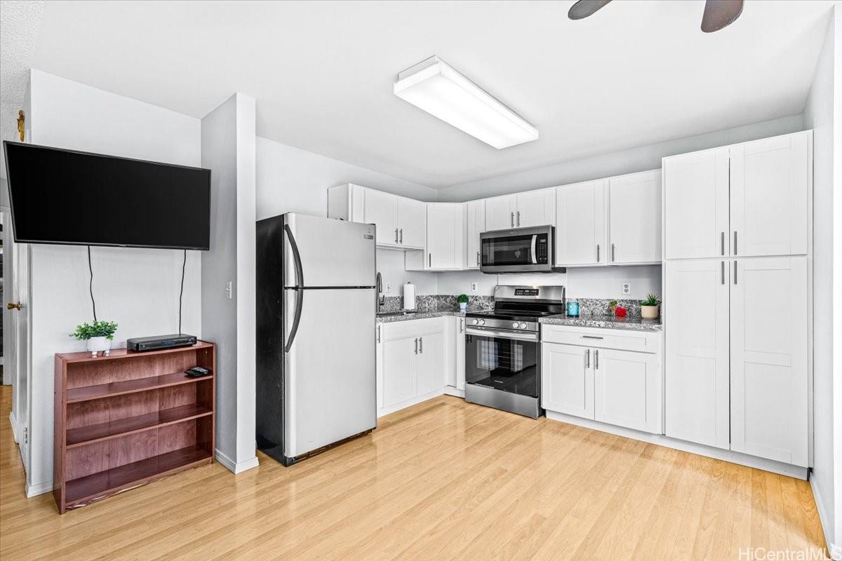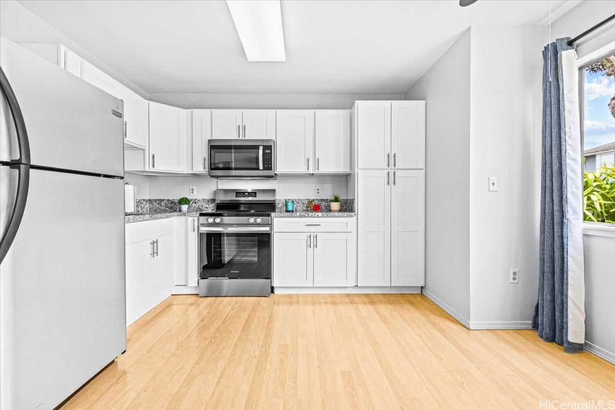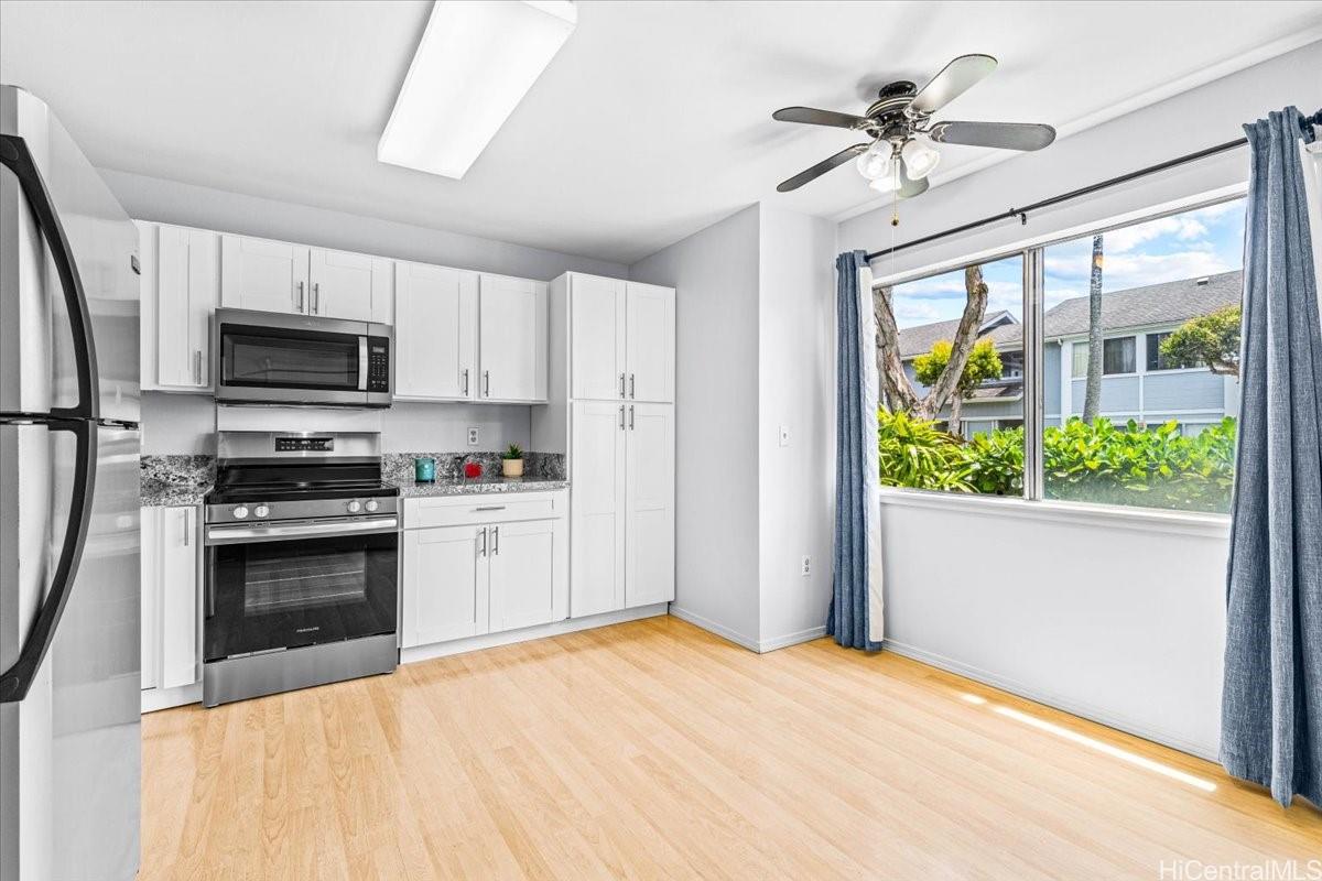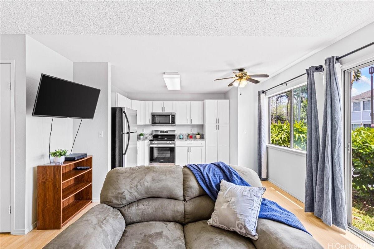 This Townhome is located in desirable Mililani and is part of the Mililani Town Association that offers 7 recreation centers for entertaining and 6 swimming pools to cool off. This home has a partial remodel in 2026 including a NEW Kitchen with brand new stove, Freshly painted interior and New Bathroom Flooring!!! Enjoy the lush tropical landscaping that enhances the neighborhood setting. For pet lovers, there's a dog park nearby that's well maintained. Just steps away from Gateway at Mililani Mauka that provides a gas station, Long's, CVS, and more! The location also offers exceptional convenience with close proximity to schools, parks, Mililani Town Center, restaurants, and the freeway toward Honolulu or the North Shore. Schofield Barracks and Wheeler Army Airfield are also just minutes away. Selling As-Is.