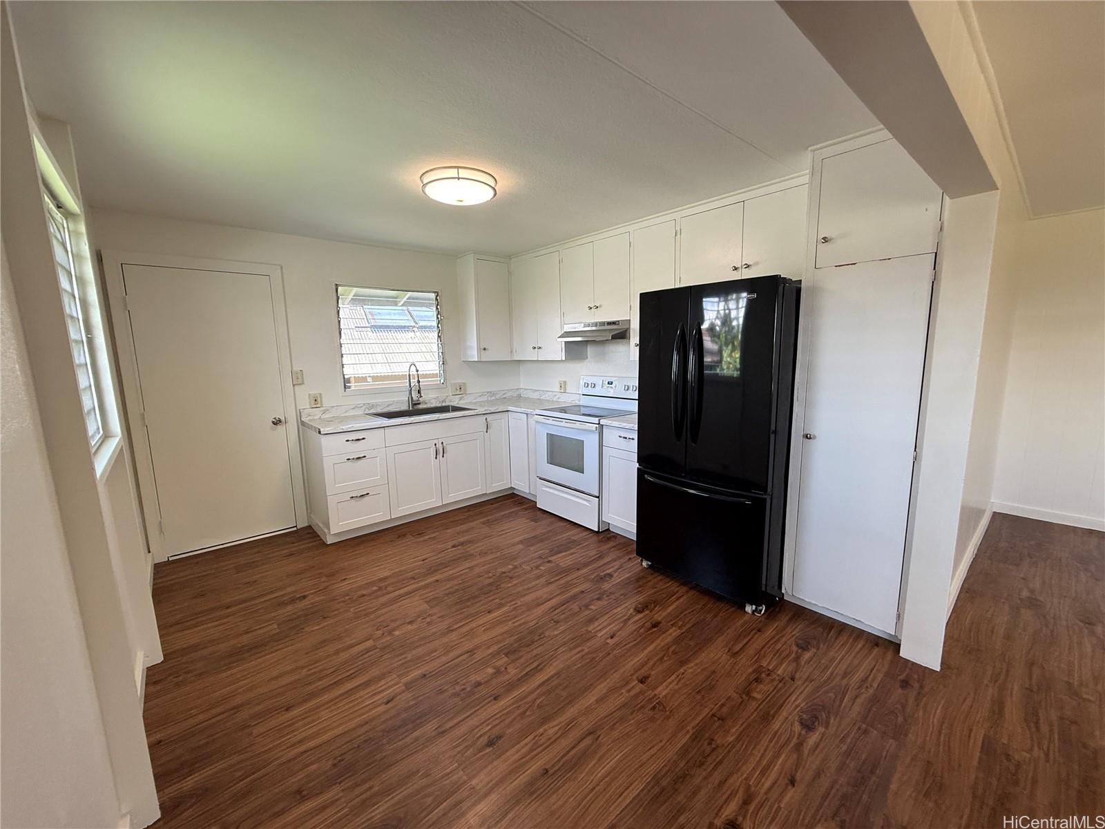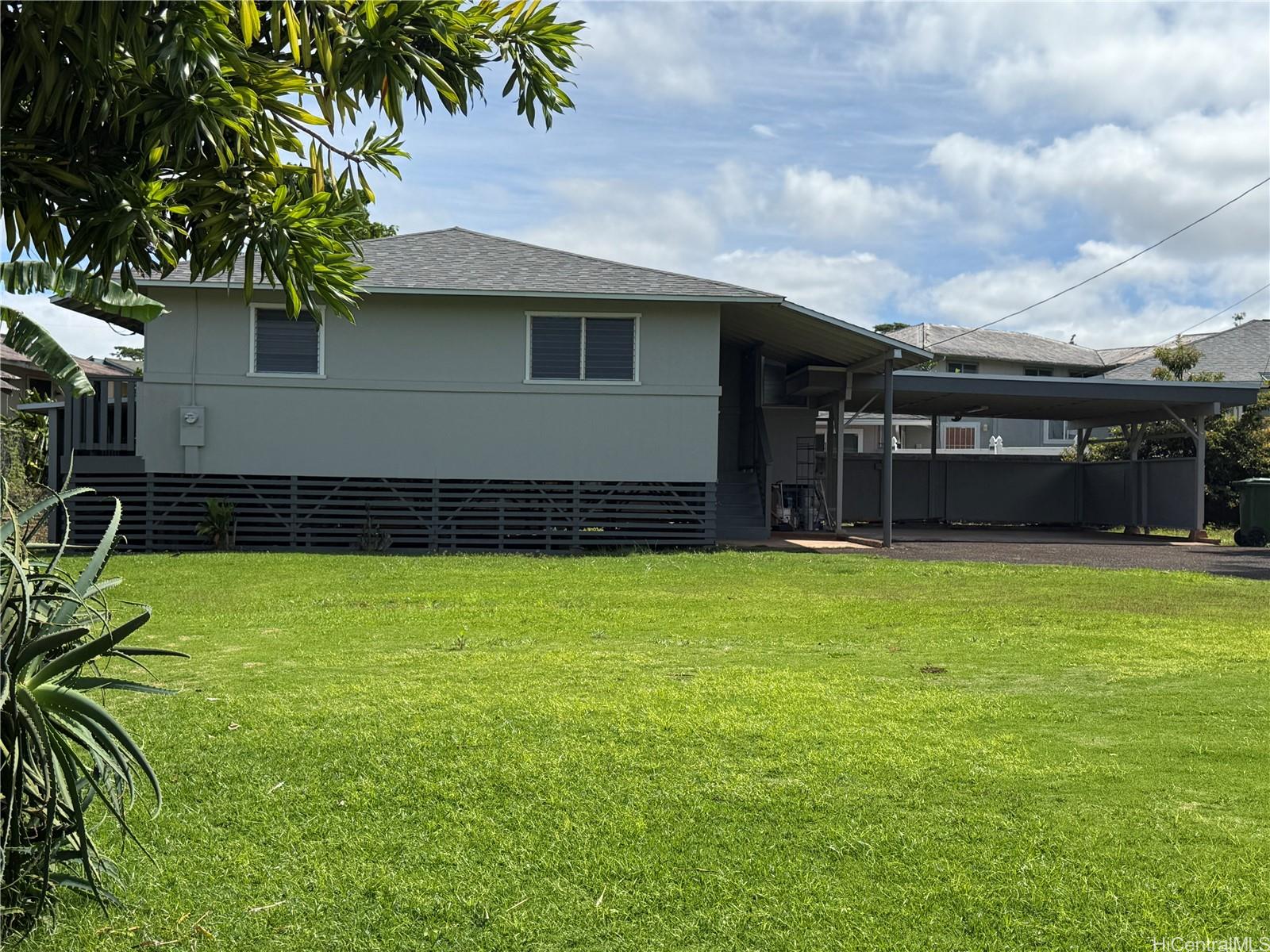 Great move-in ready 3-bd 2 bath home located in the quiet family-friendly residential area of Whitmore Village, with lush surroundings and close proximity to the North Shore. Has a spacious 9263 SF lot area, R-5 zoning with potential for 2 separate dwellings or duplex, and ADU. Home has new exterior & interior paint, new composition shingle roof, recently renovated kitchen. Walking distance to elementary school and community park. Conveniently located close to Wahiawa commercial town for shopping, eateries, Queen’s Medical Center-Wahiawa. Shopping in nearby Mililani shopping center, and Waipio Costco & Walmart.