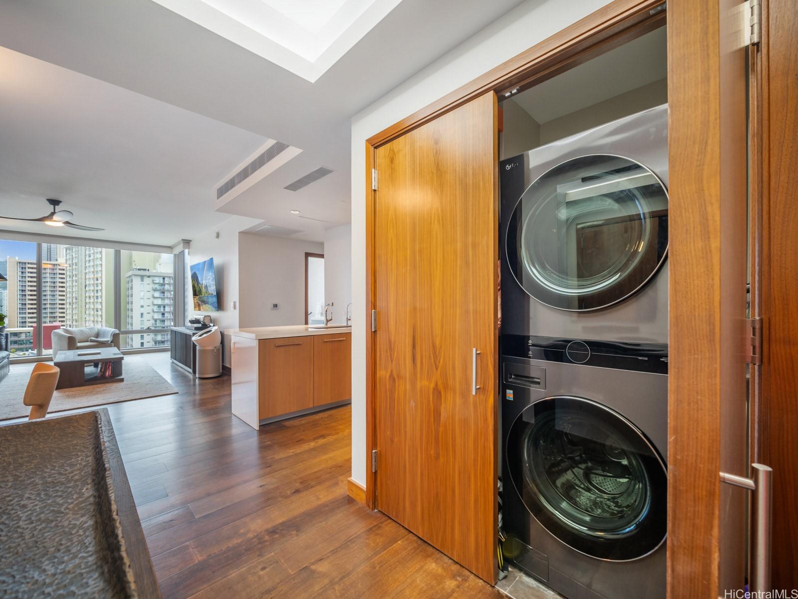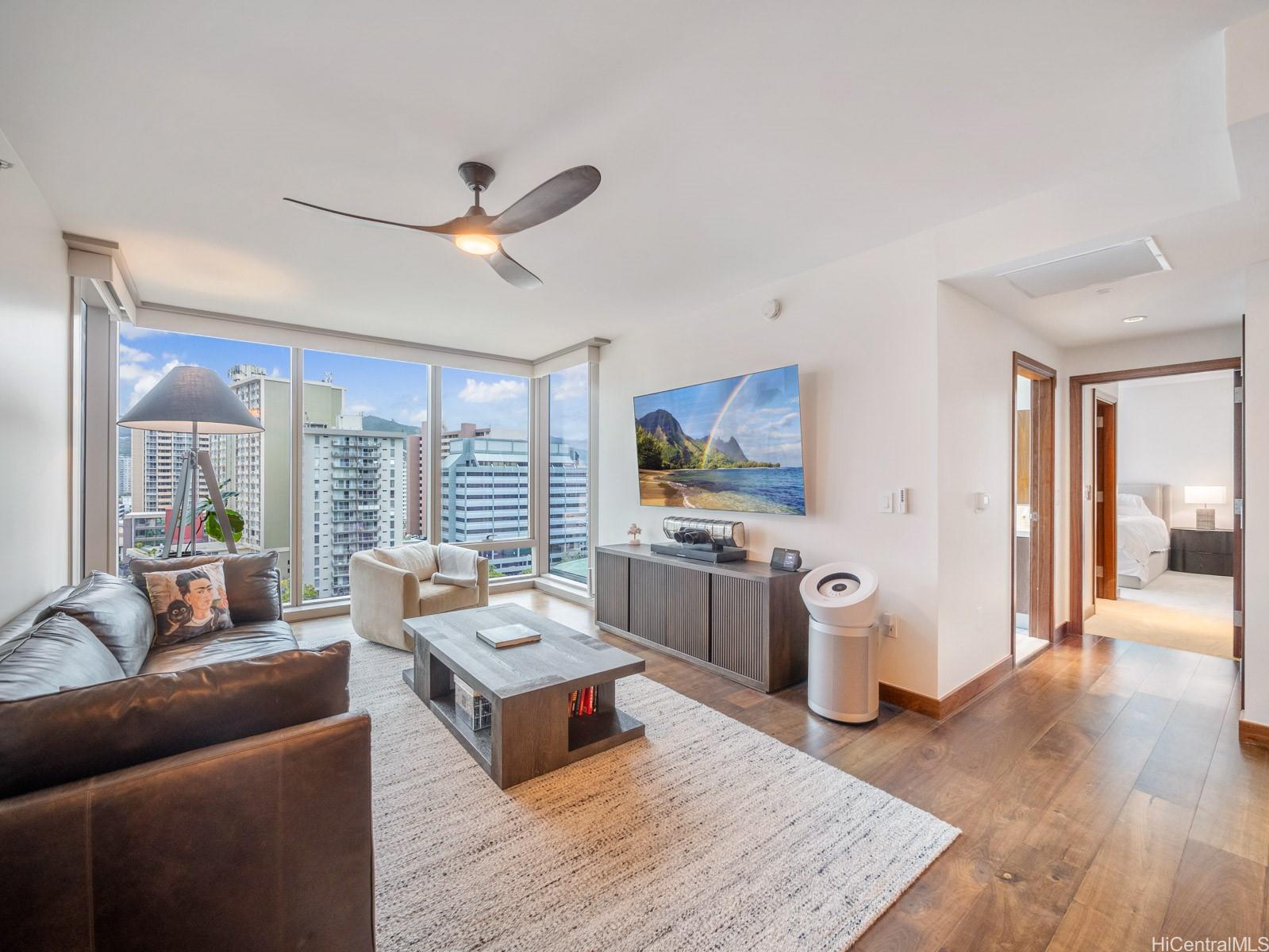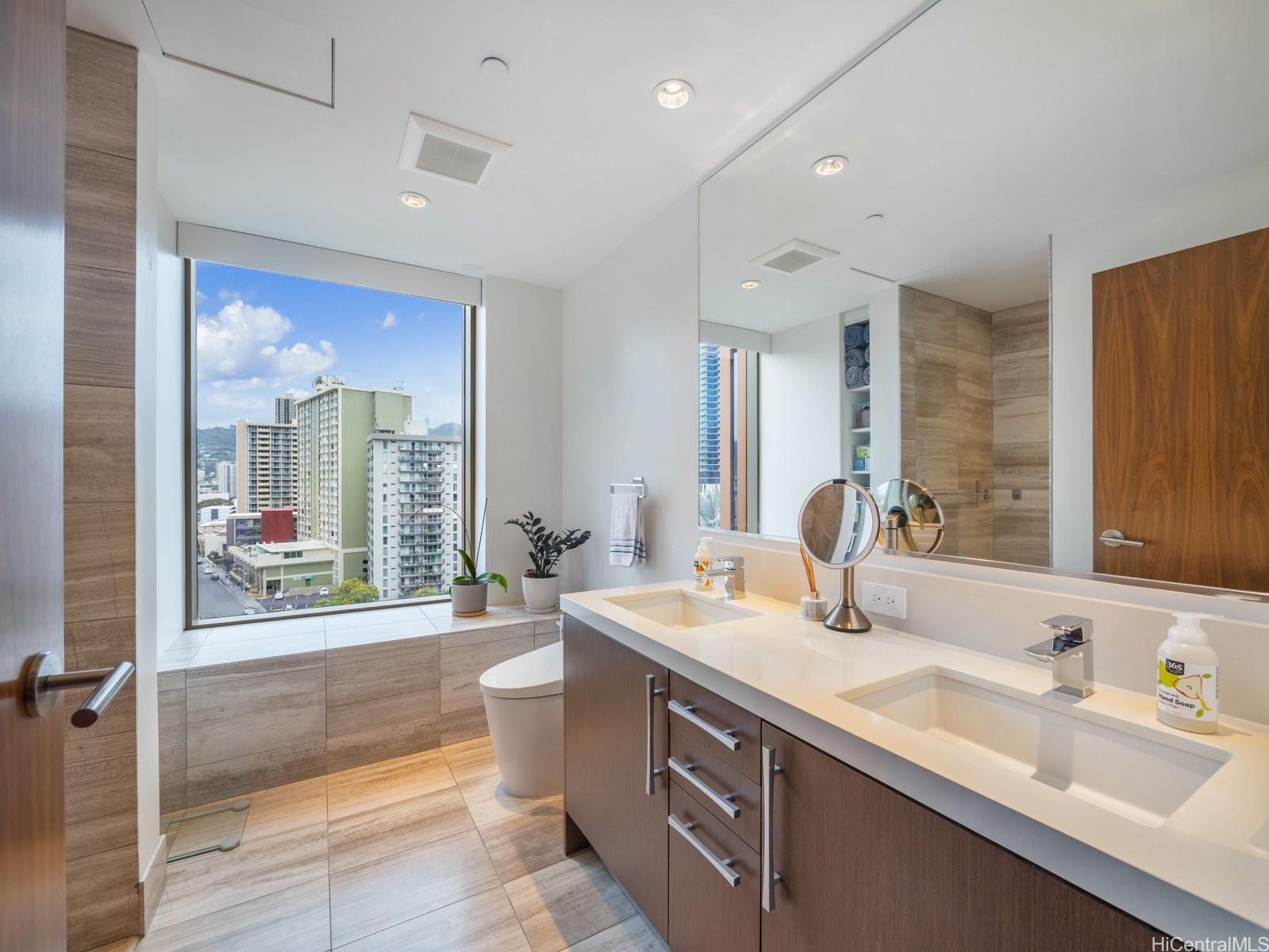 Turnkey luxury living in the heart of Honolulu! This beautifully upgraded 1-bedroom, 1-bath residence offers 881 sq ft of refined interior space thoughtfully designed with California Closets built-ins. Offered fully furnished (except bed) with high-end Restoration Hardware pieces, this home delivers a true move-in ready experience with elevated style throughout. Indulge in a spa-inspired bathroom featuring premium TOTO fixtures, including sought-after TOTO Neorest toilet. A standout feature rarely found in a 1-bedroom: 2 assigned parking stalls & 4 storage lockers. Residents enjoy resort-style amenities including pool, fitness center, recreation areas, BBQ spaces & secured entry, creating a comfortable & convenient lifestyle right at home. Perfectly positioned along the Kapiolani corridor, just minutes from Ala Moana Shopping Center, Waikiki, world-famous beaches and dining & entertainment. Whether you're looking for a primary residence or investment opportunity, this property offers ideal combination of location, lifestyle & value. Don’t miss this rare opportunity to own this upgraded residence with exceptional parking & storage in one of Honolulu’s most desirable urban locations.