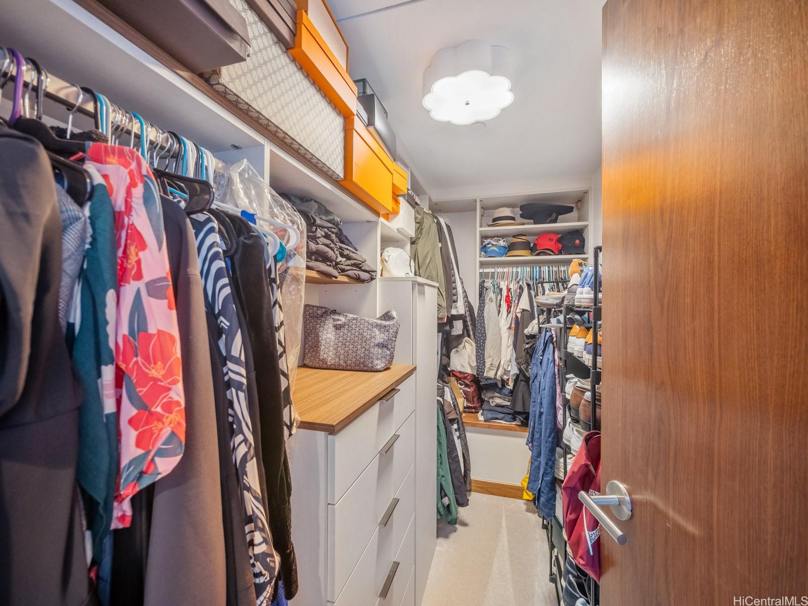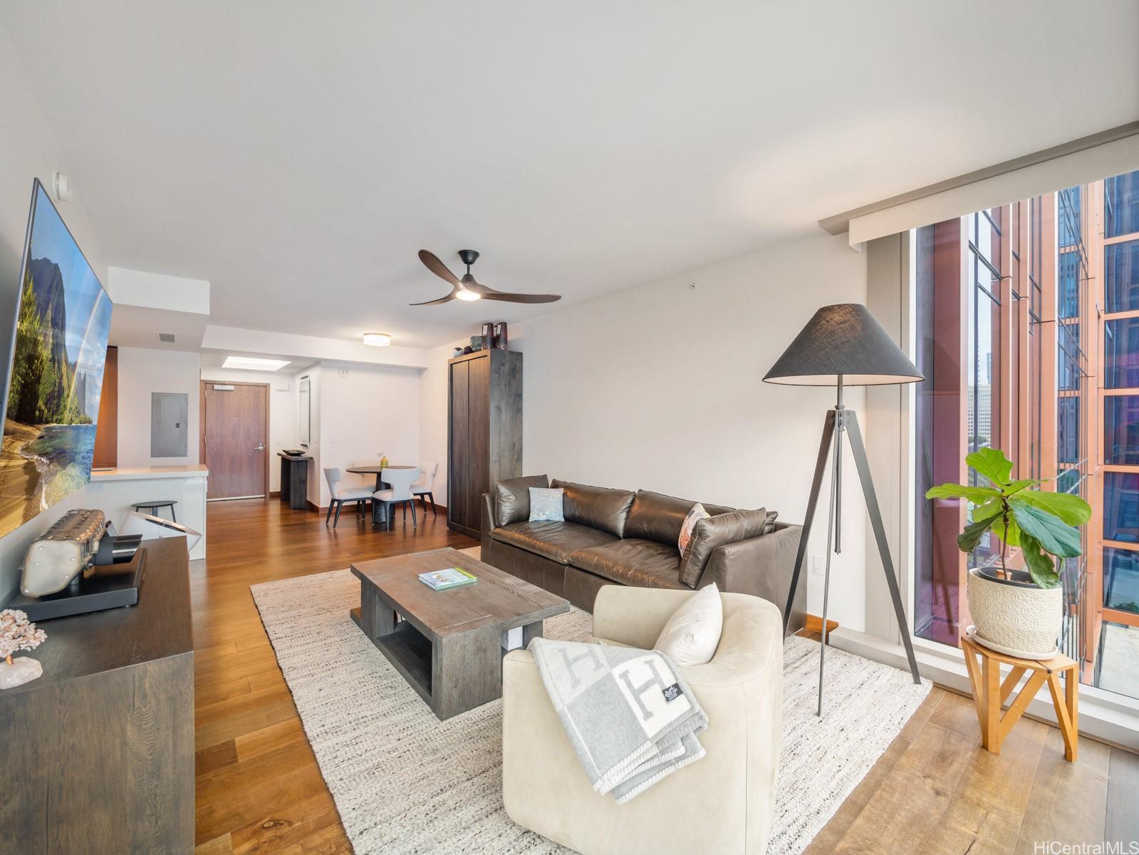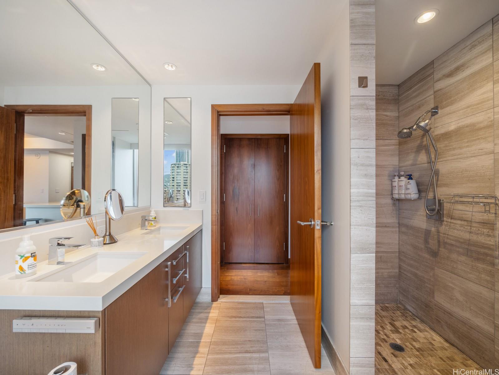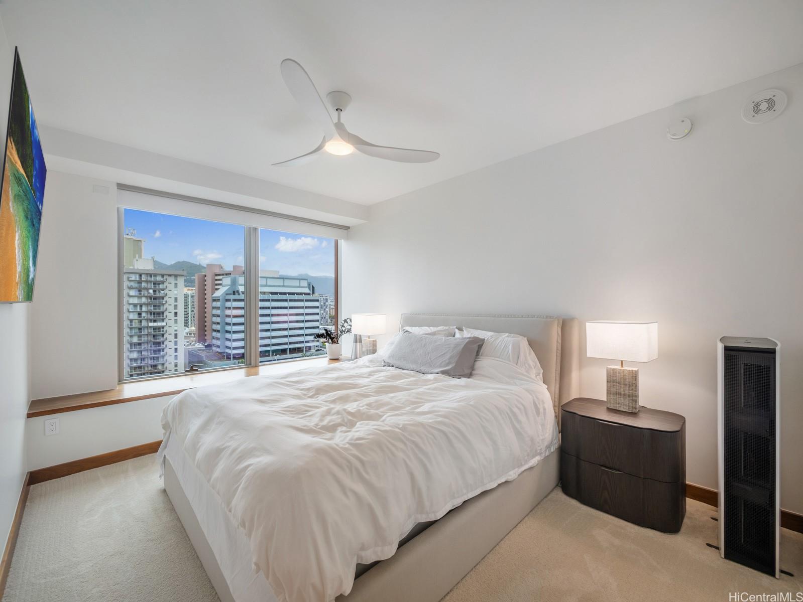 Turnkey luxury living in the heart of Honolulu! This beautifully upgraded 1-bedroom, 1-bath residence offers 881 sq ft of refined interior space thoughtfully designed with California Closets built-ins. Offered fully furnished (except bed) with high-end Restoration Hardware pieces, this home delivers a true move-in ready experience with elevated style throughout. Indulge in a spa-inspired bathroom featuring premium TOTO fixtures, including sought-after TOTO Neorest toilet. A standout feature rarely found in a 1-bedroom: 2 assigned parking stalls & 4 storage lockers. Residents enjoy resort-style amenities including pool, fitness center, recreation areas, BBQ spaces & secured entry, creating a comfortable & convenient lifestyle right at home. Perfectly positioned along the Kapiolani corridor, just minutes from Ala Moana Shopping Center, Waikiki, world-famous beaches and dining & entertainment. Whether you're looking for a primary residence or investment opportunity, this property offers ideal combination of location, lifestyle & value. Don’t miss this rare opportunity to own this upgraded residence with exceptional parking & storage in one of Honolulu’s most desirable urban locations.