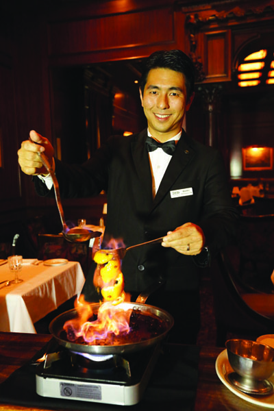 英国貴族の邸宅を思わせる重厚感あふれるメインダイニング。その奥に設えられたグリルの上ではハワイの香木キアヴェの炭で分厚いステーキが焼き上げられる。ワイキキ屈指の老舗ステーキハウスとして地元客や海外のリピーターに支持されている「ハイズ・ステーキハウス」では、他店の追従を許さない絶品ステーキと、その味を引き立てる極上ワインが楽しめる。この店のステーキの美味しさはあまりにも有名だが、今回お店のお勧めはラム肉のロースト。ビーフだけでなく日本では出会えない美味しいラム肉を提供することもハイズの自慢。