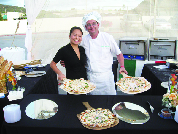 ミニマムオーダー : ピザ($18)15枚以上。出張費は1時間につき$35。ホノルル以外は$25のロケーションフィー。ピザ25枚以上は$100のアシスタントフィー(税・チップ別)