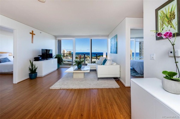 美しいオーシャンビュー付きの手入れの行き届いた高層階ユニット、海にもショッピングにも便利な素晴らしいロケーション、そして贅沢なアメニティの数々。これだけ条件が揃っていて80万ドル台というのは見逃せません。ホノルルのシティライフを楽しむにはぴったりのユニットです。