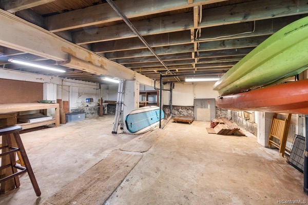 なお、床下のスペースは大きなストレージになっており、カヤックやボードを保管する場所や日曜大工などのワークショップとしてもぴったり。ちなみにここはあくまでストレージ。駐車スペースは他にあり、この住宅には2台分のパーキングが確保されています。