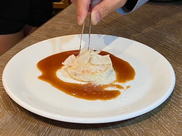 フォアグラ、キャビアと並ぶ西洋の三大珍味とされている「トリュフ」を贅沢に使った香り豊かな料理が特徴で、まるで宝箱のような美しい箱に入ったお好みのトリュフを、料理の上からふんだんに削ってくれるプレゼンテーションは圧巻です。