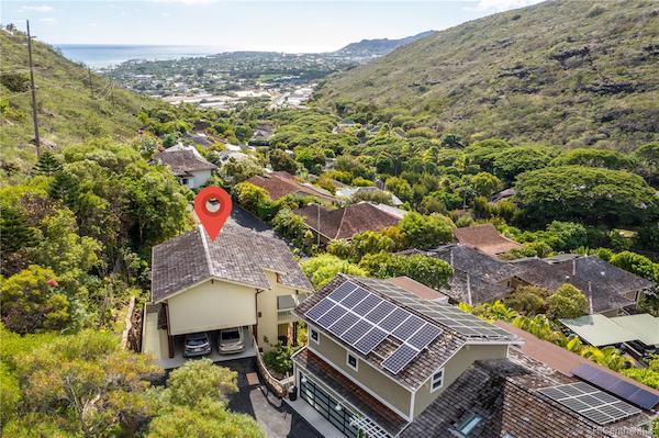 今日ご紹介するのは、ホノルルの高級住宅地カハラからぐっと山側に登った、緑豊かな谷のタウンハウス群「カラニイキエステート」にある住宅。タウンハウス群の中にありながらも戸建になっている、ちょっとユニークな物件です。