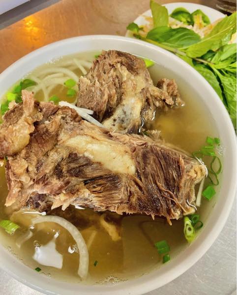 らーめんバリ男の向かいにオープンした「リブス&ブロス」。ベトナムのフォーや生春巻きや春巻きなどが楽しめるお店。シグネチャーメニューは麺が隠れるほどの大きな骨付きショートリブがドーンと乗った写真の「ダブルビーフ・ショートリブフォー($26.95)」。