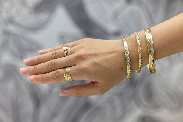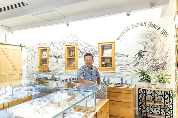 5年ほどして独立し、ジュエリー工房の「Maxi」を設立。最初は路面店ではなくビルの2階で一日中、彫金をしていました。そのうち良い物件が見つかって、ワイキキに路面店をオープン。お客様と実際に接しながらデザインを提供できるのは、とても刺激的で楽しい時間でした。この頃に学びました。「デザインはお客様のものだ」と。最初は自分のやりたいデザインのジュエリーを作っていました。でもお客様の想いや記憶を反映させるほうが大切で、そしてやっぱりハワイ感を求めていますから、それを取り入れるのも大事。