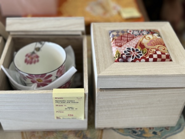 贈り物にぴったりの縮緬細工を施した桐箱入りの和食器。