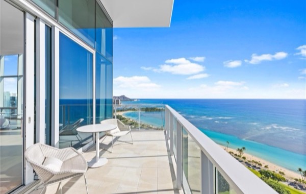 大きなラナイからは、空に浮かび、海に溶けるようなダイナミックな景色を体感できます。ダイヤモンドヘッド、マジックアイランド、正面にはアラモアナビーチパーク、そしてサンセットまで美しく連なる景色を堪能できるユニットです。