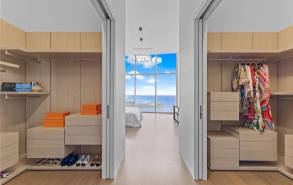 マスターベッドルームには左右振り分けのカスタム仕様ウォークインクローゼットも完備されています。