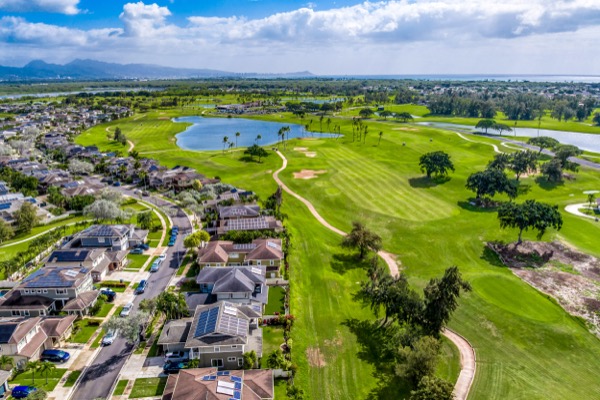 このようにハワイプリンスゴルフクラブのコース沿いに計画的に作られた邸宅群の中でも、ゴルフコースに面したプレミアムロケーションの一軒がこの売出物件です。