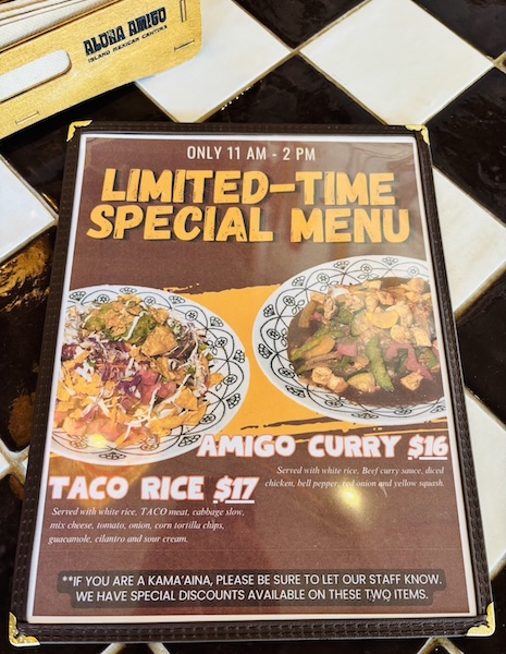ワイキキの人気店「Aloha Amigo」では、ハワイ在住者向けに$13カマアイナランチメニューを導入。